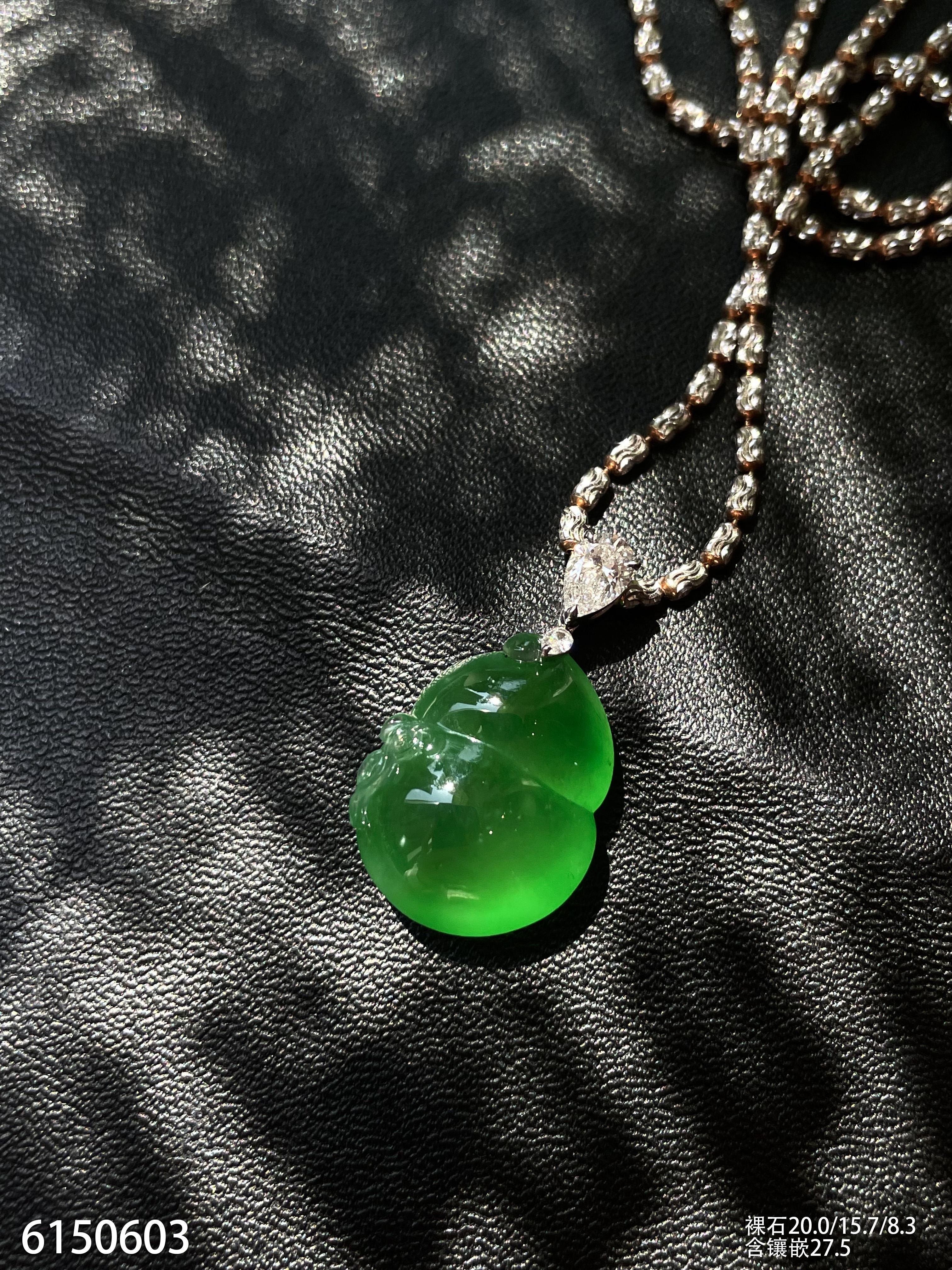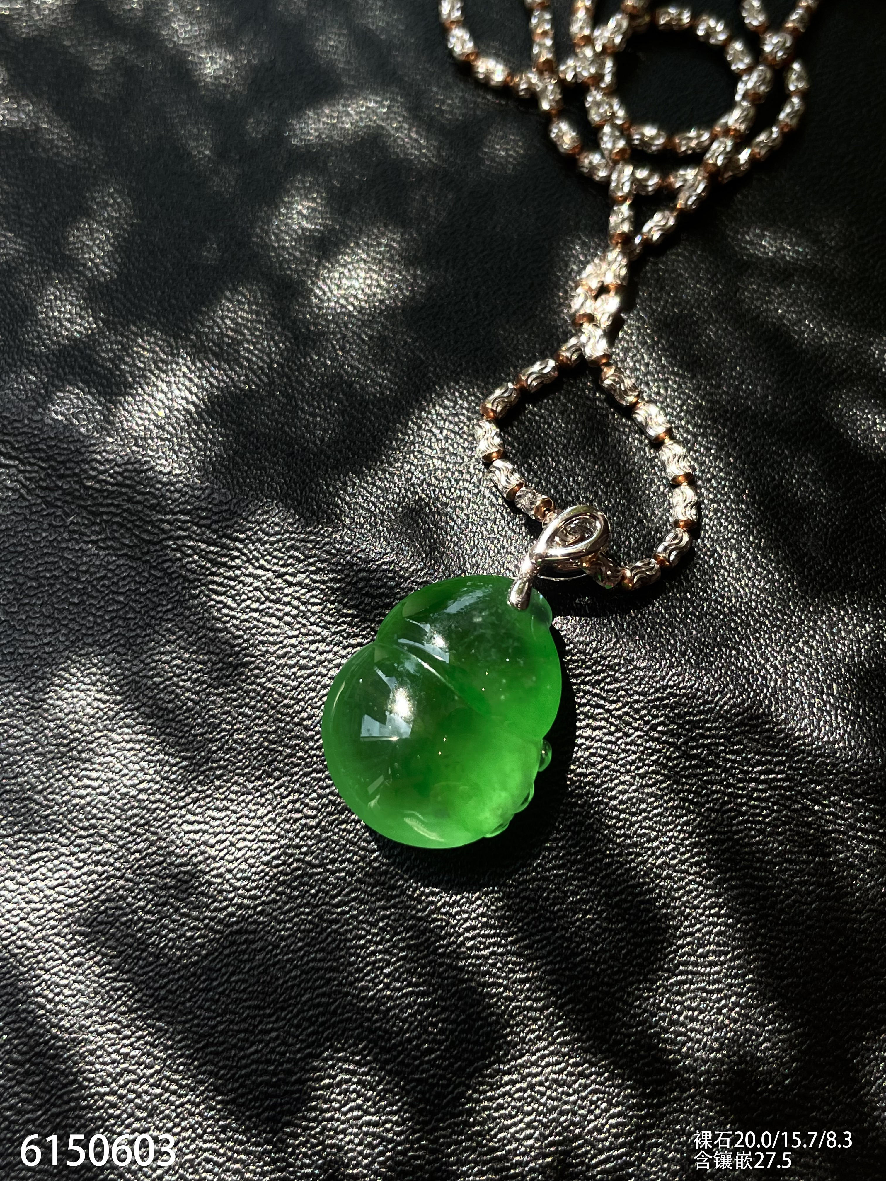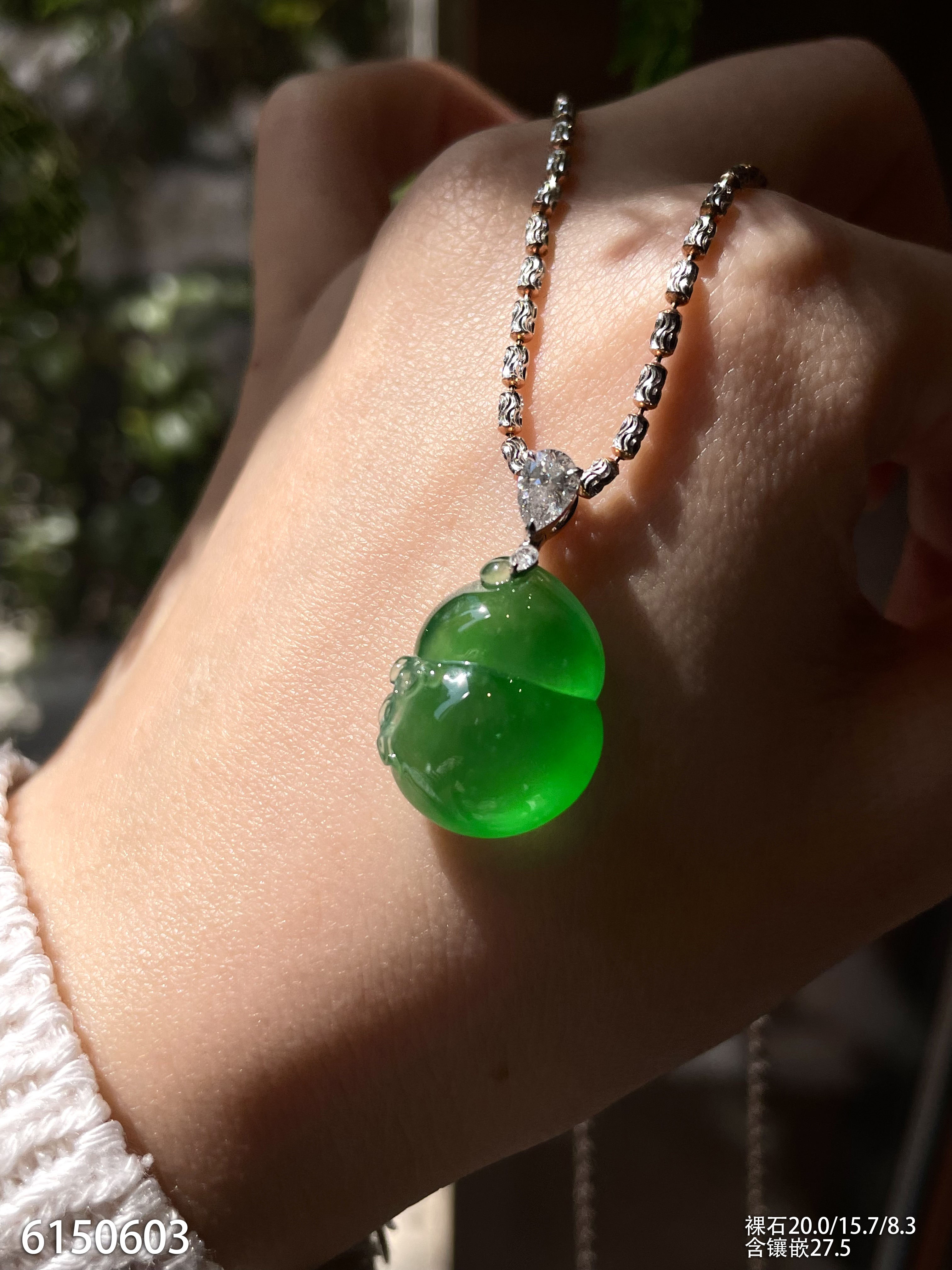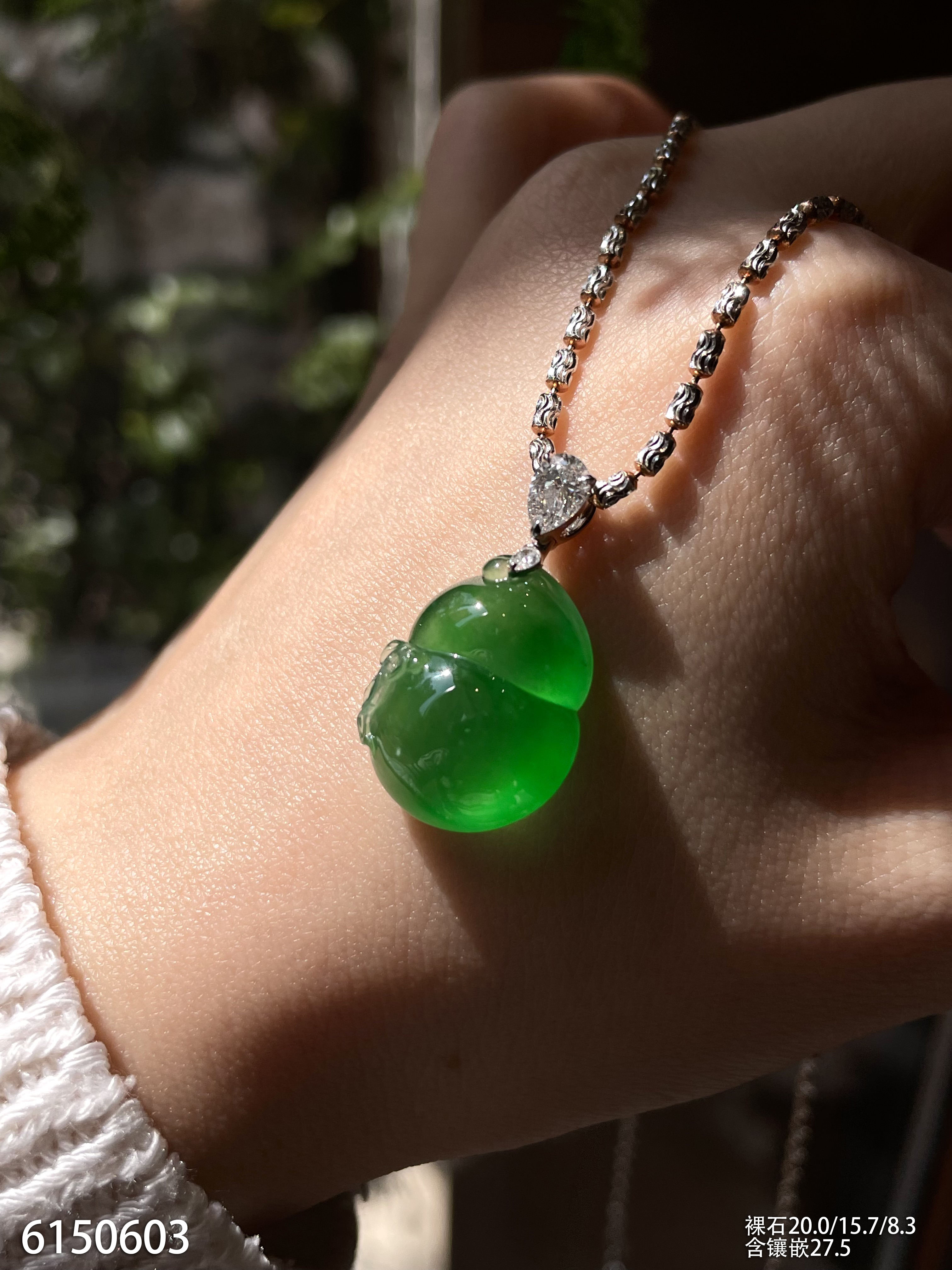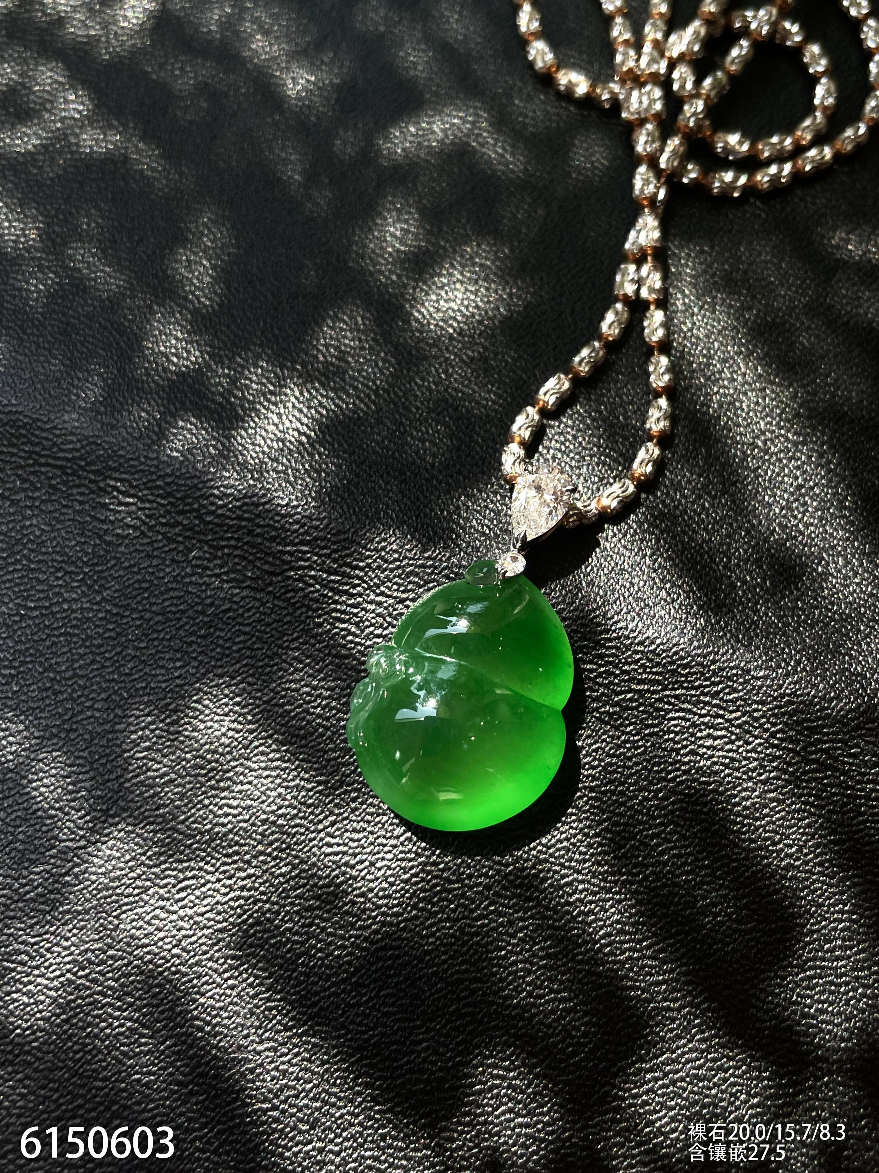玻璃种艳绿葫芦吊坠【6150603】具体价格微信咨询