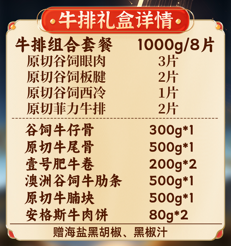 原切牛肉礼盒礼品卡眼肉菲力西冷肥牛卷公司团购送人礼盒装399