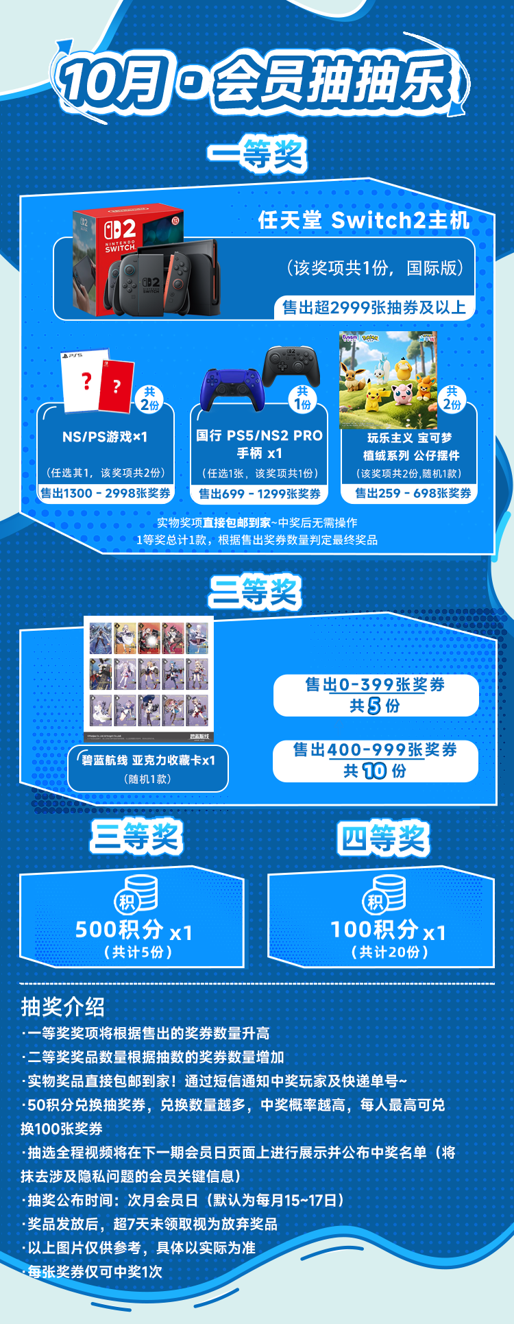 【10月会员日抽抽乐】本期最高奖项 - 价值3799 任天堂 Switch2主机(下期会员日期间公布中奖名单并发放奖品)