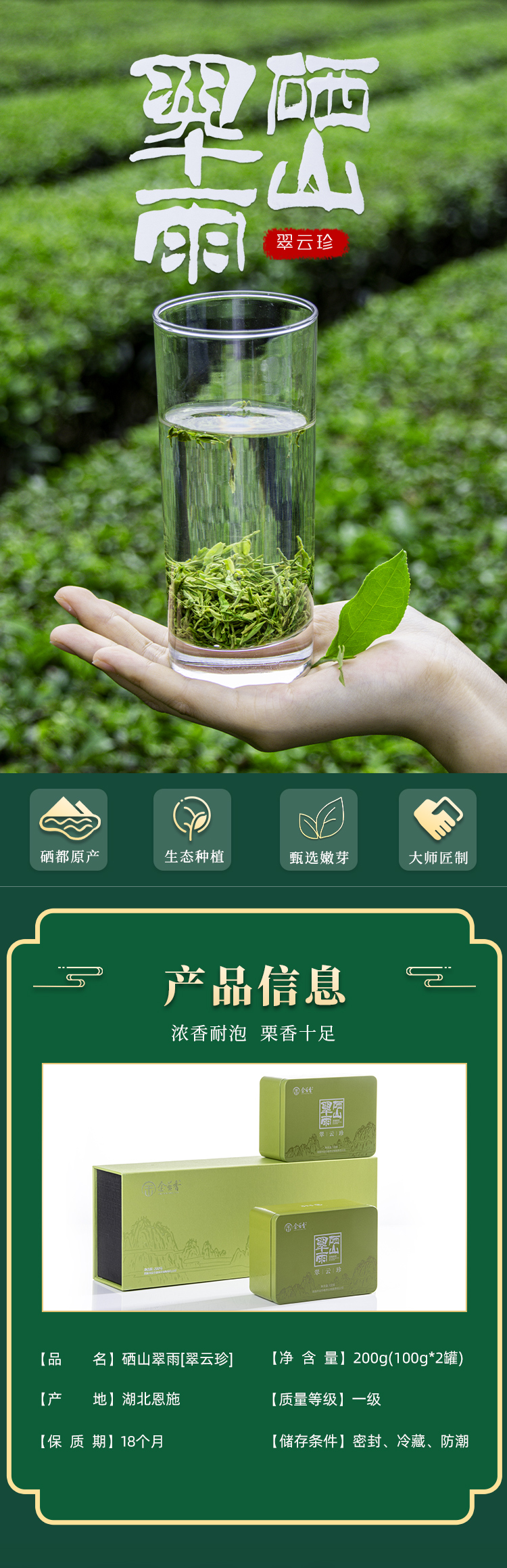 恩施 金苔香 硒山翠雨 · 翠云珍 绿茶礼盒装(100g*2罐)/盒
