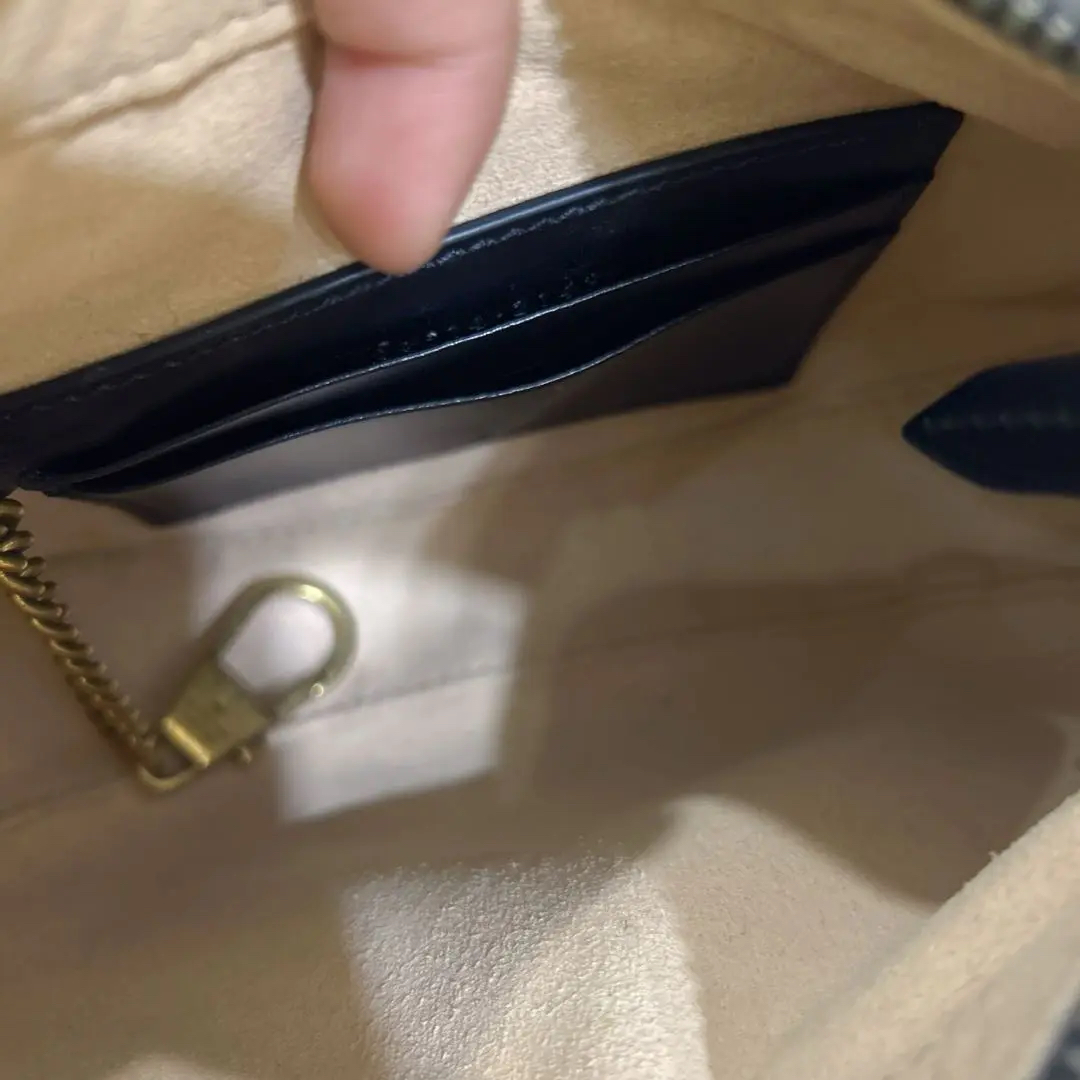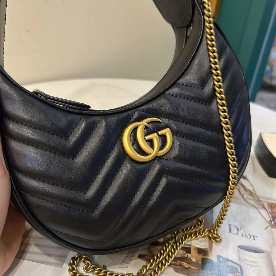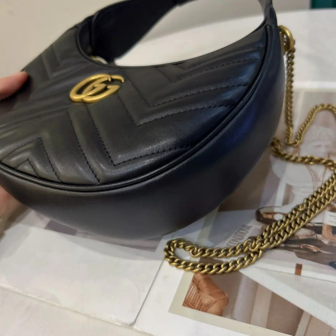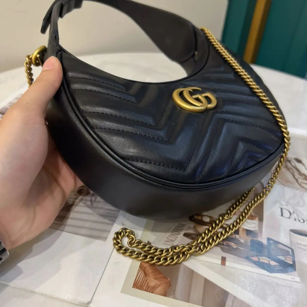 【商品详情】正品二手!GUCCI 马蒙 双G 黑金 牛皮 小号 半月包👜98新🥰20×10 配件:防尘袋。双G马蒙永恒不可替代的经典!