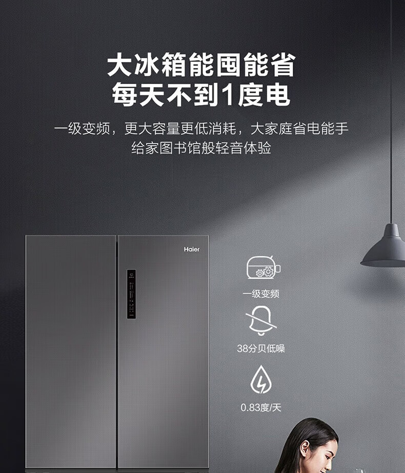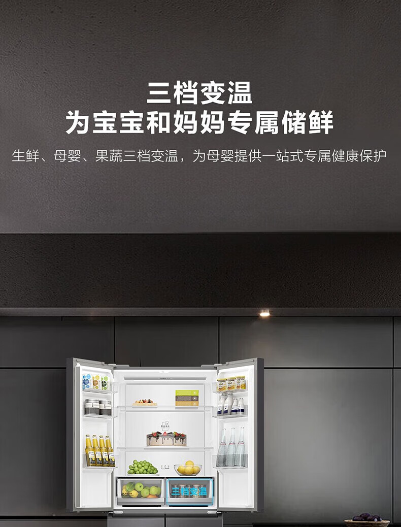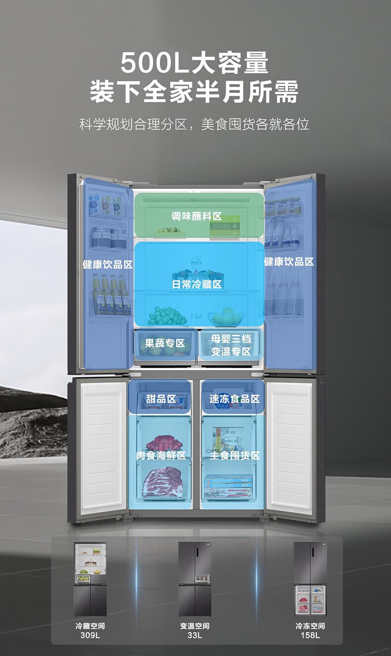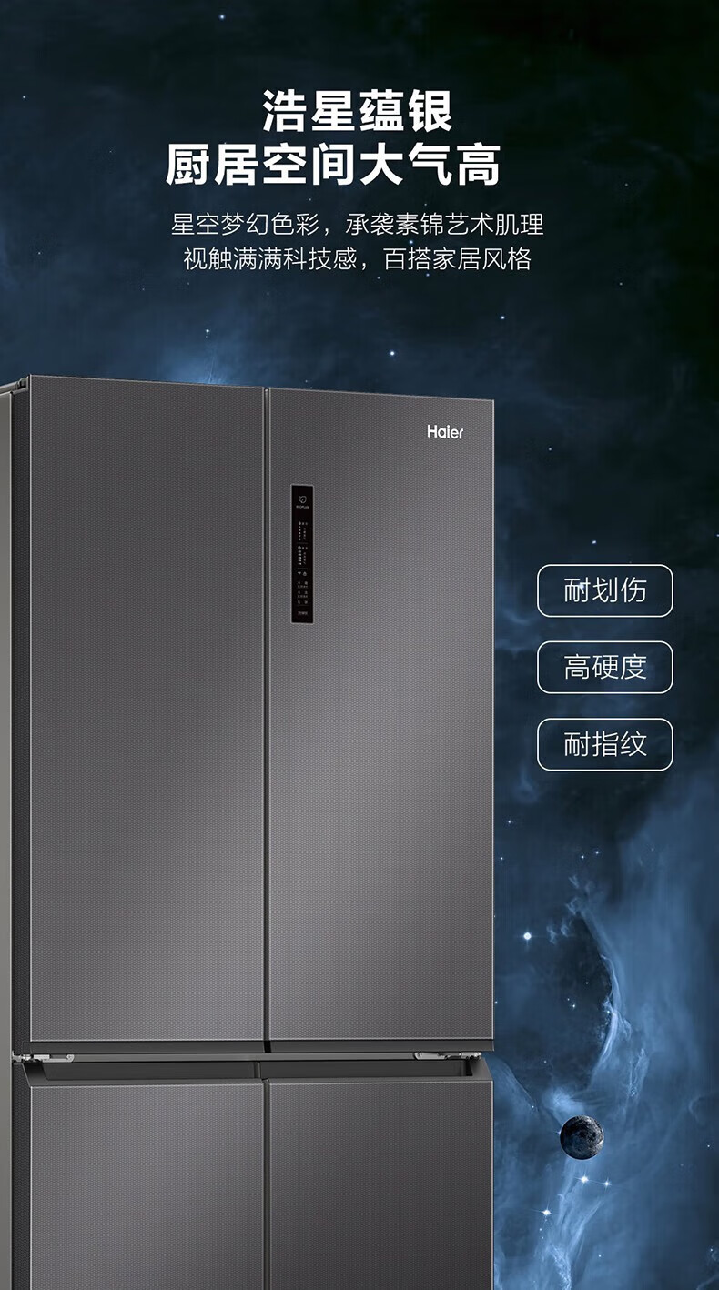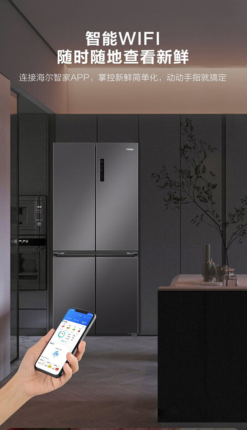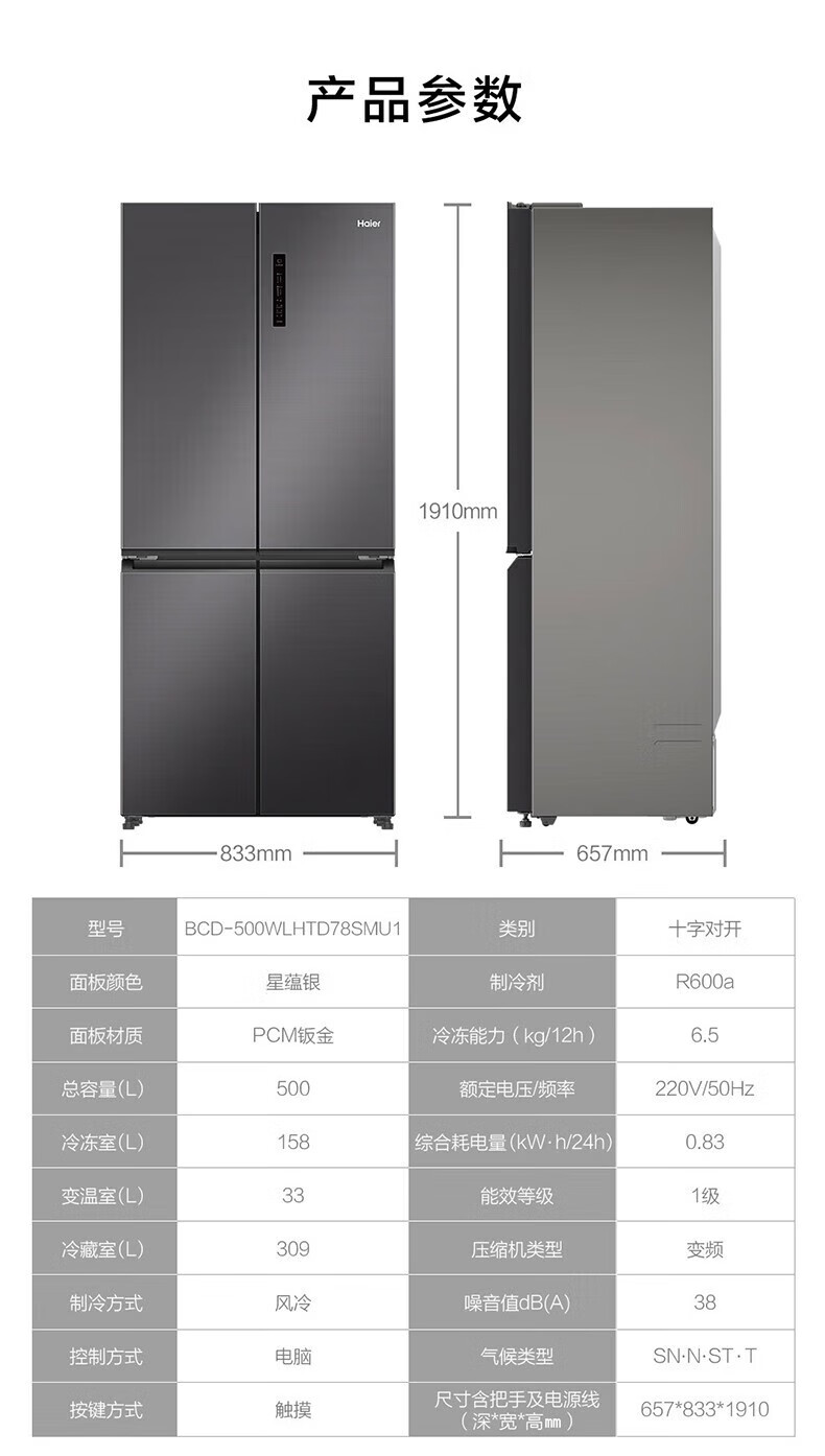 海尔(Haier)500升十字对开双开四开门电冰箱家用一级能效变频节能风冷无霜超大容量超薄BCD-500WLHTD78SMU1
