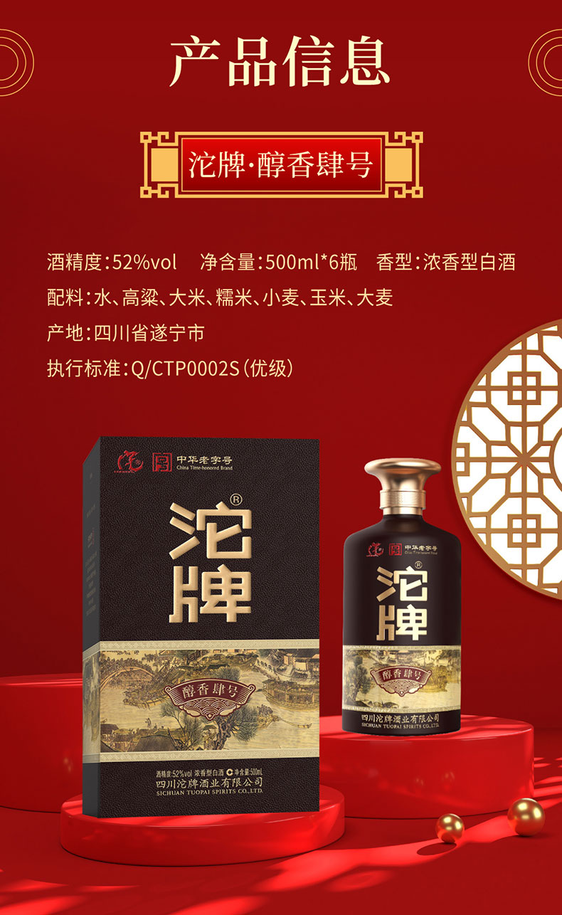 舍得沱牌52度白酒整箱醇香肆号浓香型500ml