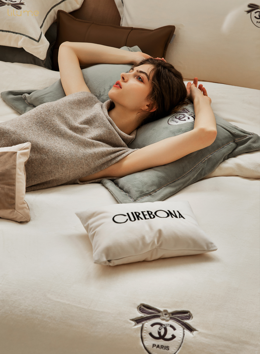 利路米秋季新款超细牛奶绒保暖四件套谢丽尔白