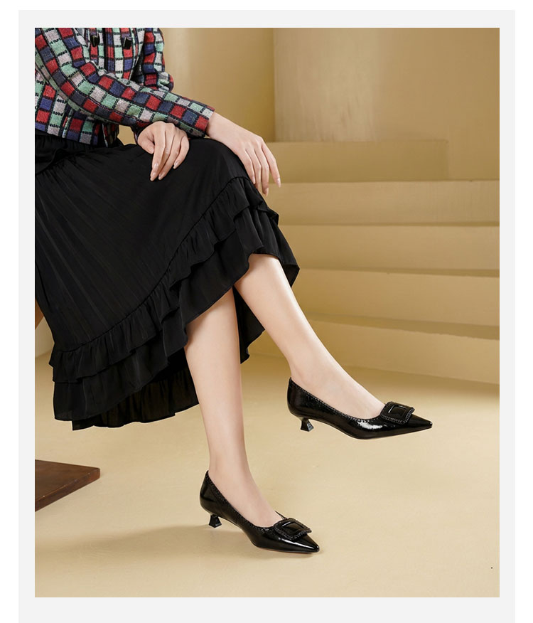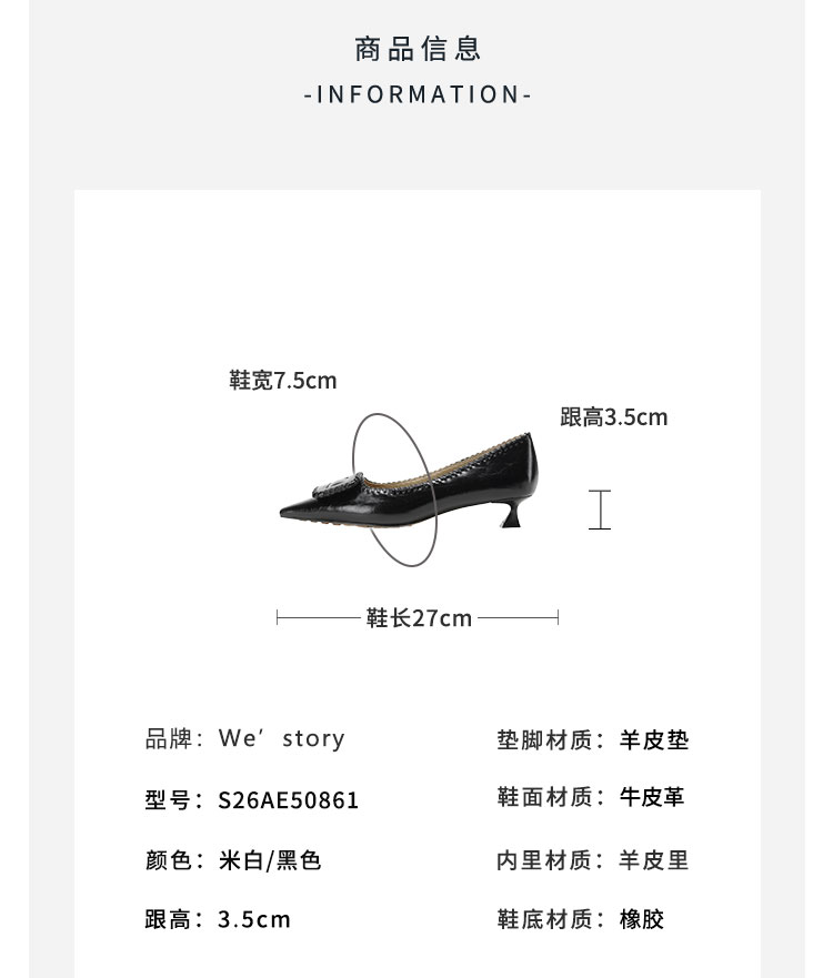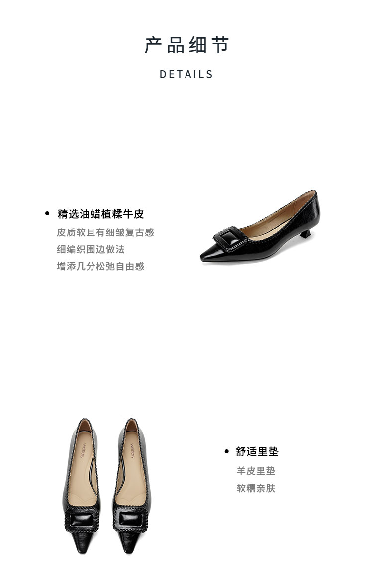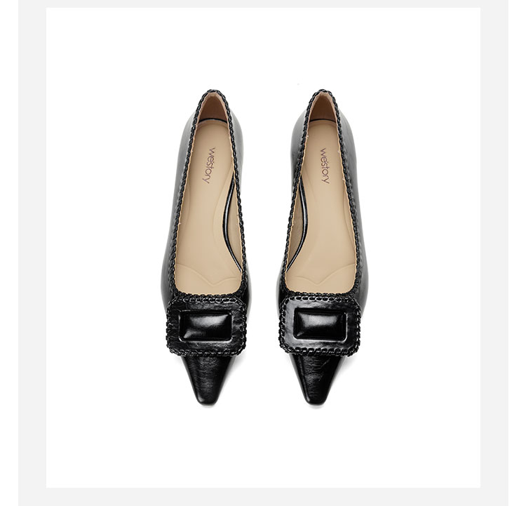 Westory2026年春季牛皮尖头低跟单鞋通勤休闲百搭浅口鞋