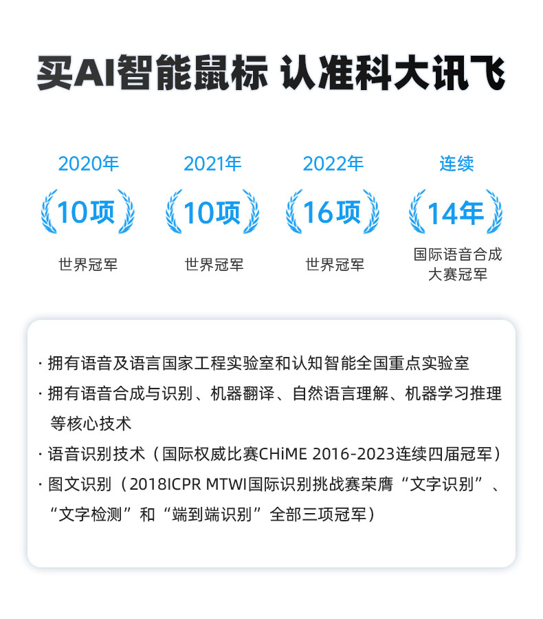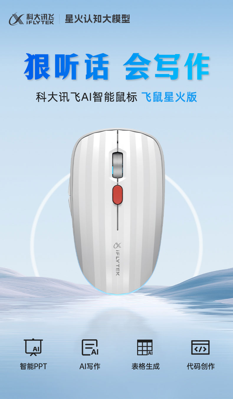 科大讯飞 AI智能鼠标STD飞鼠星火版 助力高效办公 语音输入 48小时发货