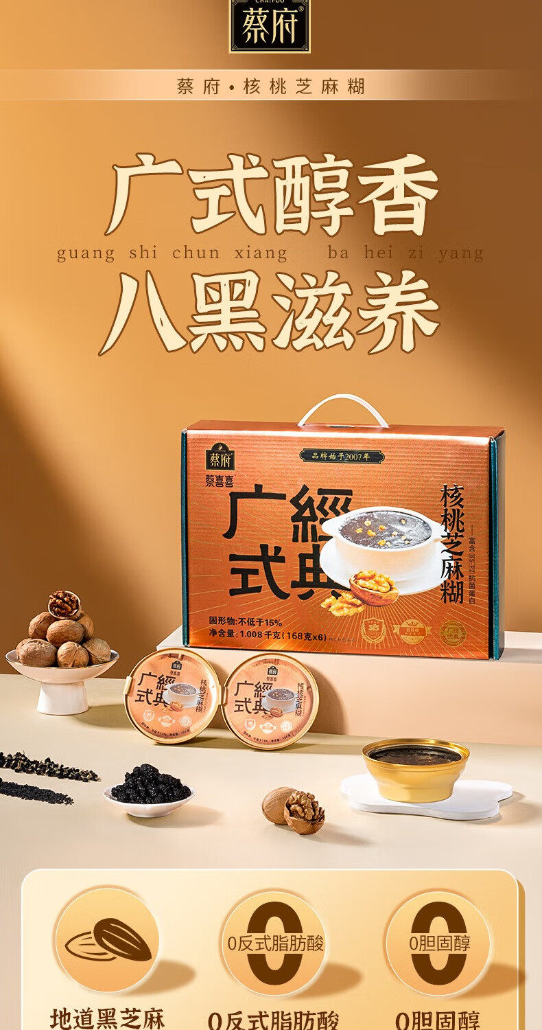 【分仓直发包邮】蔡府核桃黑芝麻糊1.008kg(168g*6)