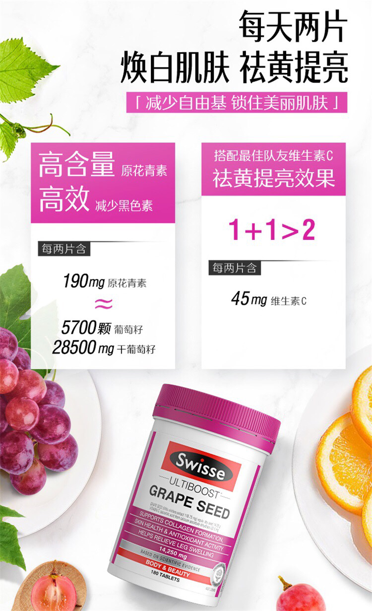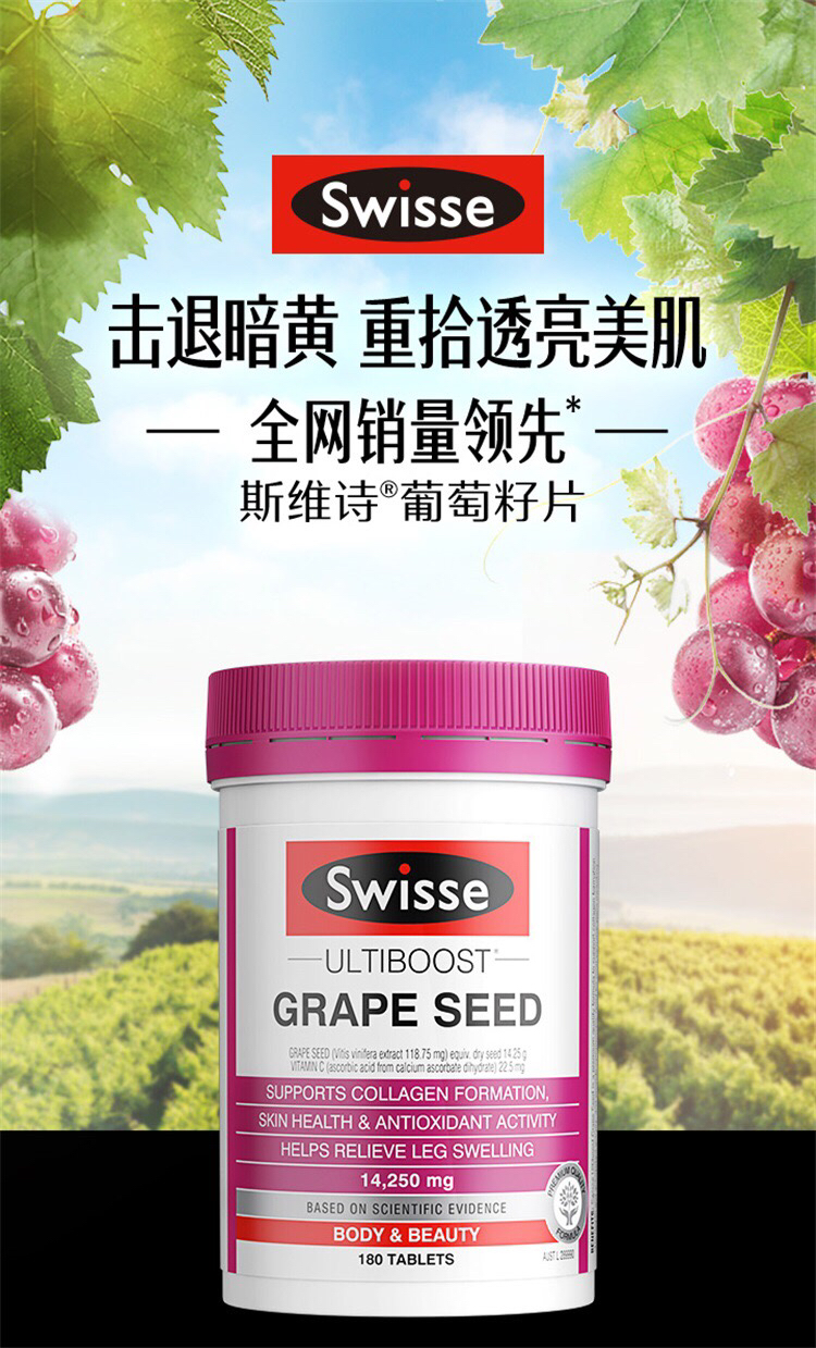澳洲Swisse 斯维诗葡萄籽精华180粒-300粒-原花青素美白-会员6折