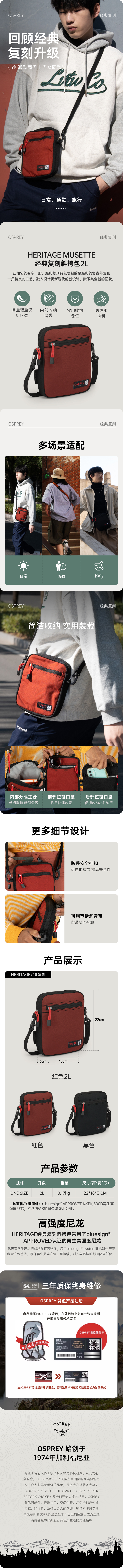 OSPREY 经典复刻斜挎包2L城市单肩通勤休闲便携旅行随身包