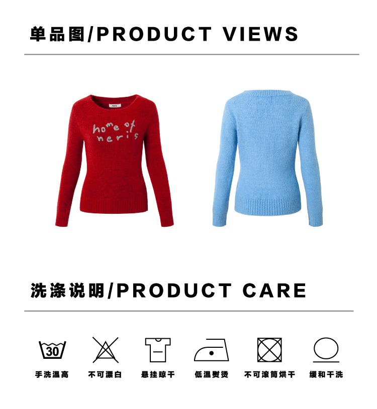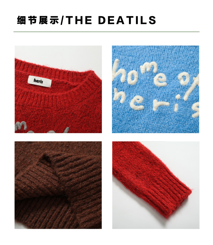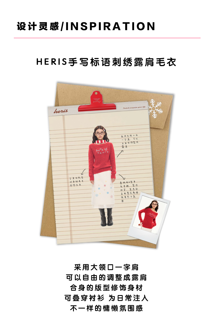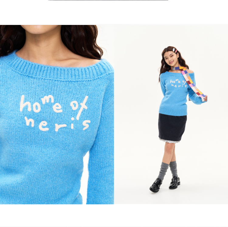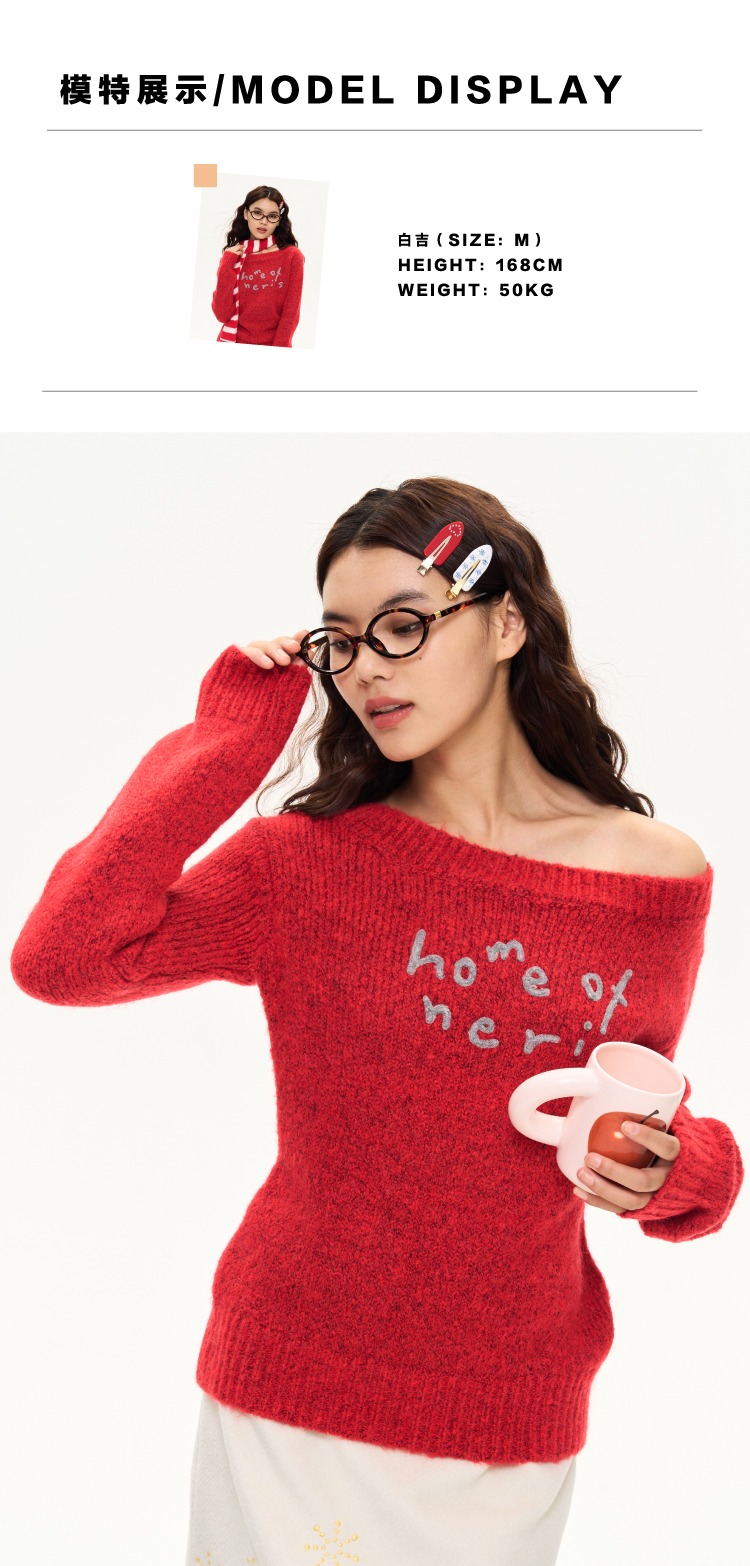 heris/H44103a/H44103b/H44103c/手写标语刺绣 一字肩慵懒氛围感毛衣