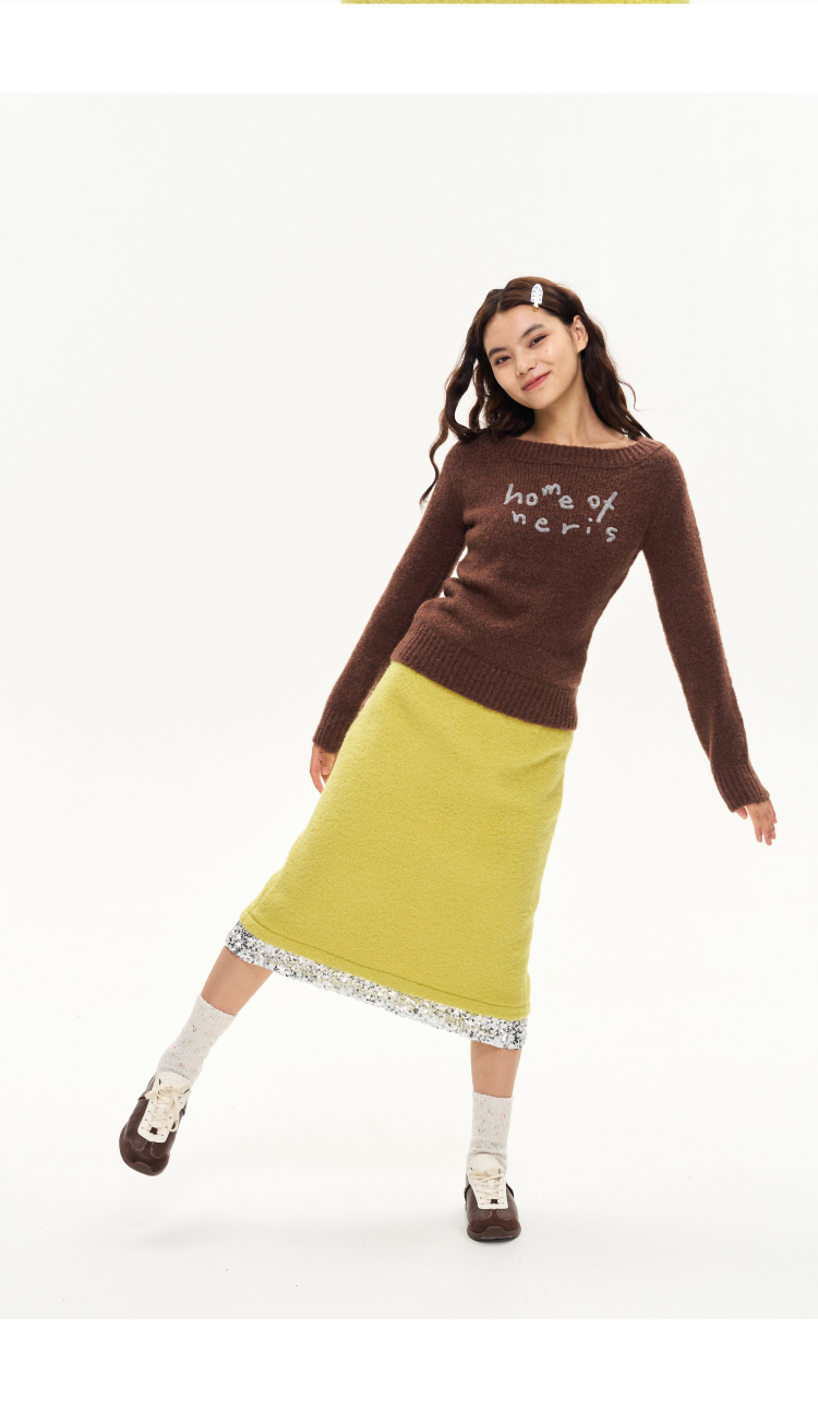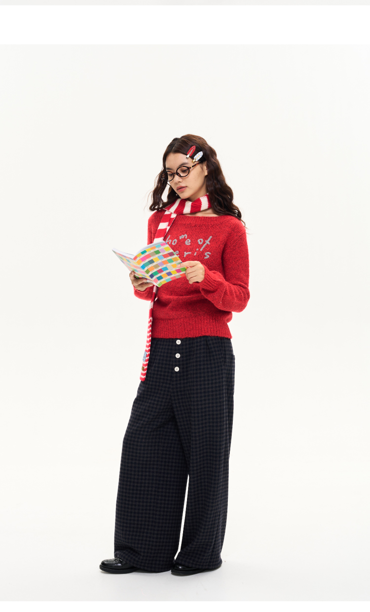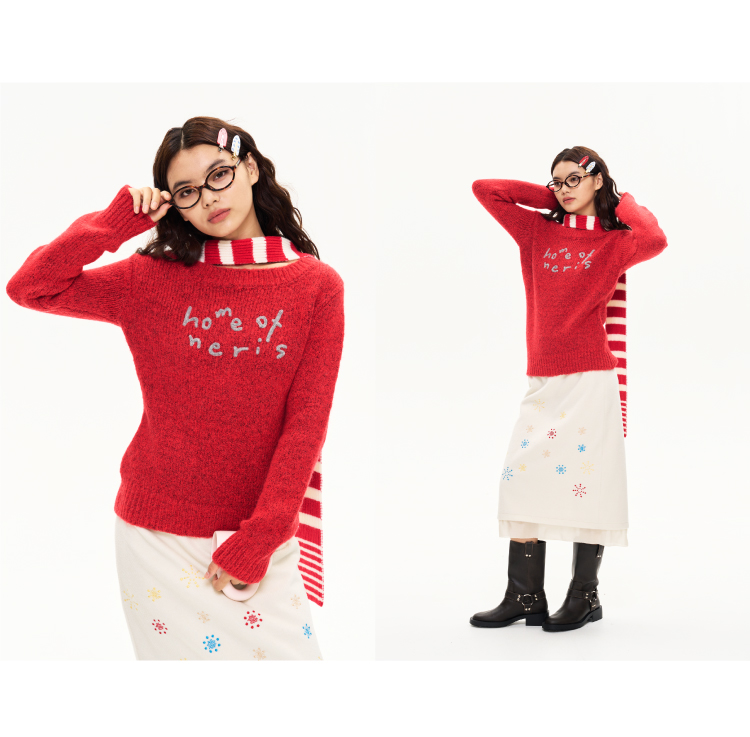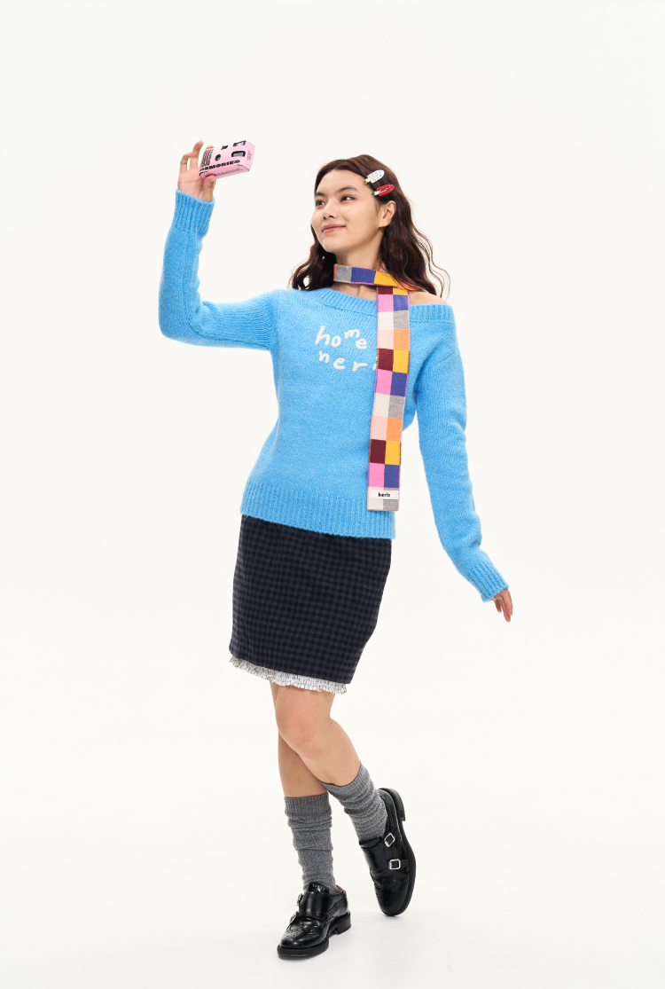heris/H44103a/H44103b/H44103c/手写标语刺绣 一字肩慵懒氛围感毛衣