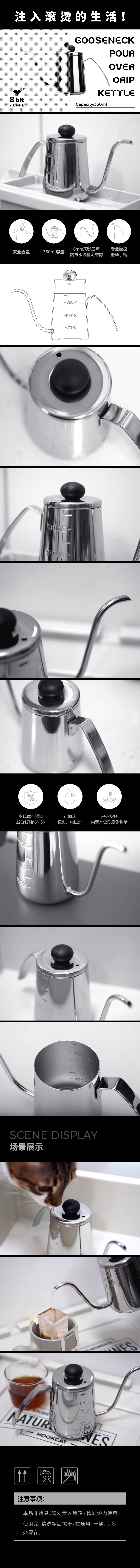 350ml露营不锈钢手冲咖啡壶 | 家用细口 | 便携式