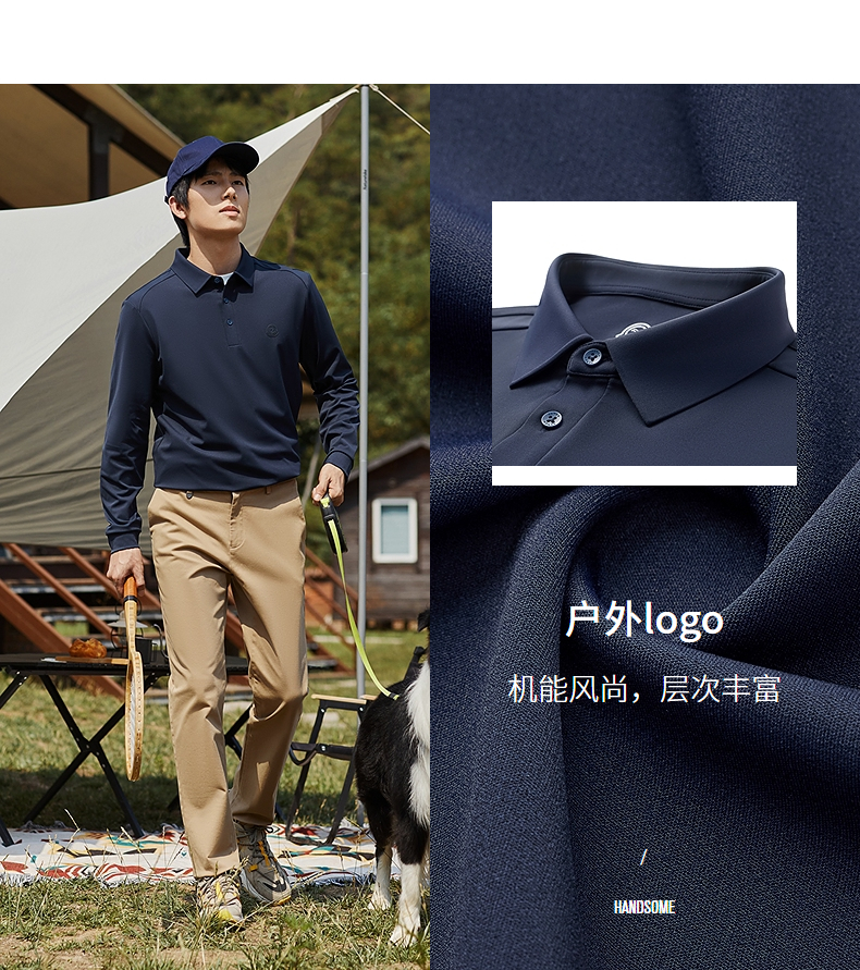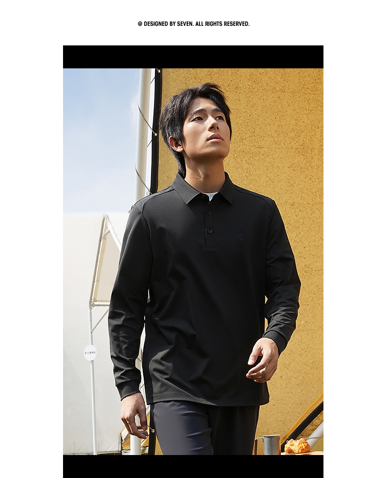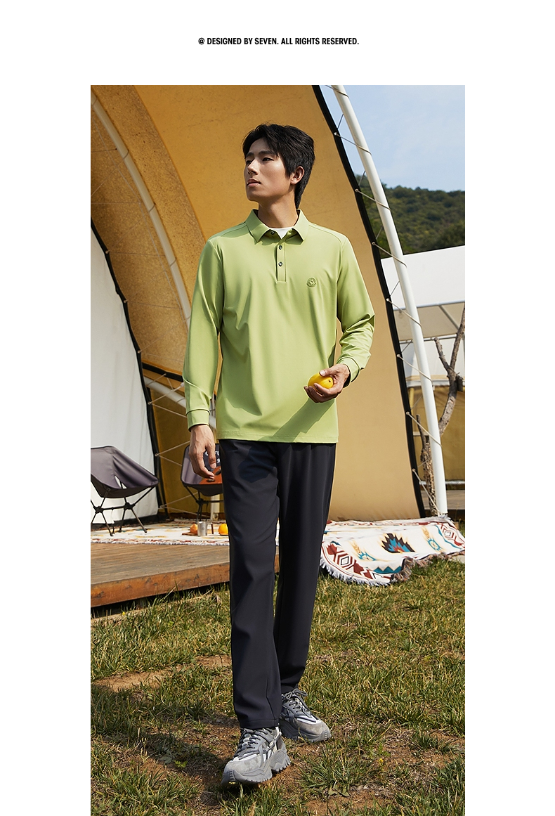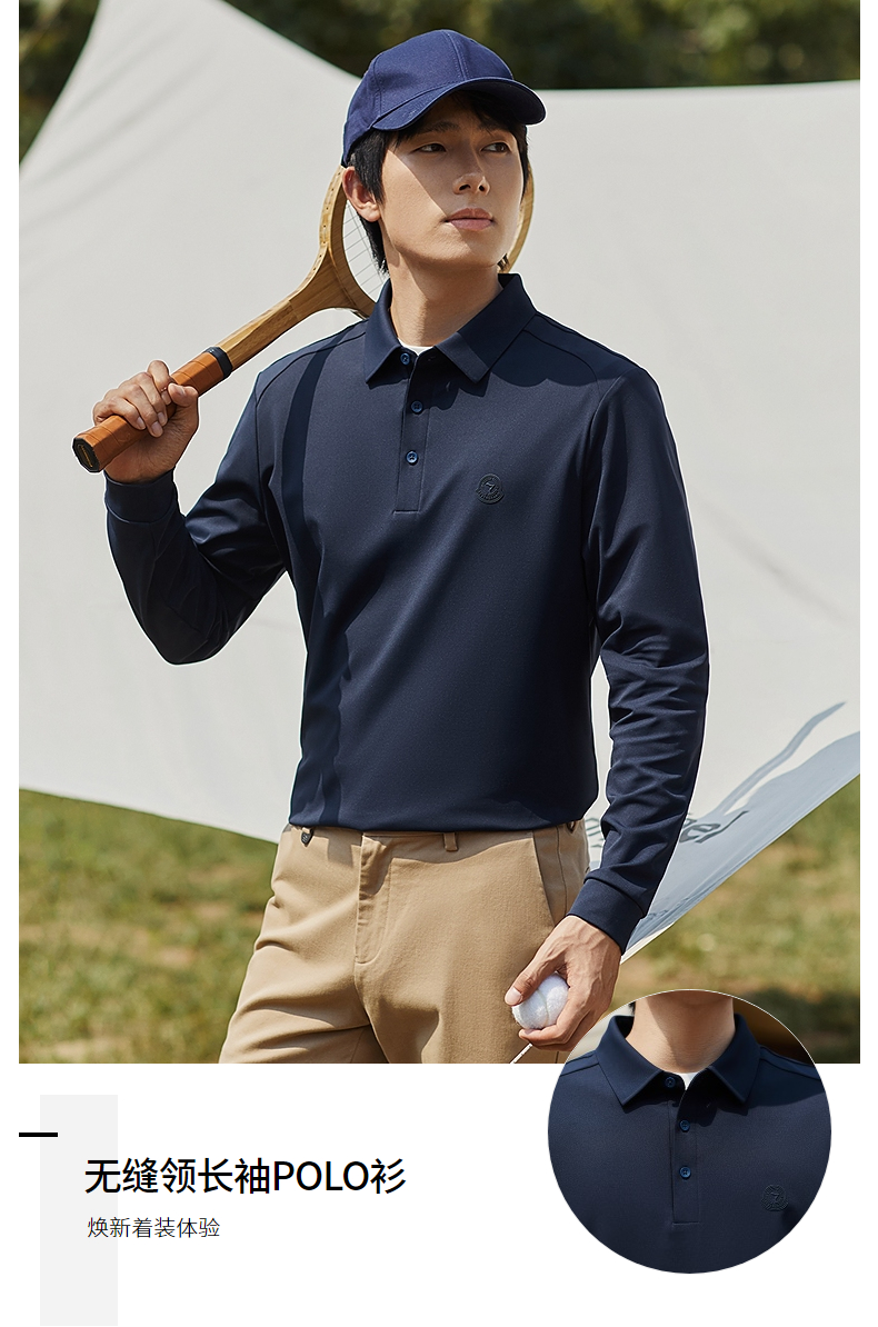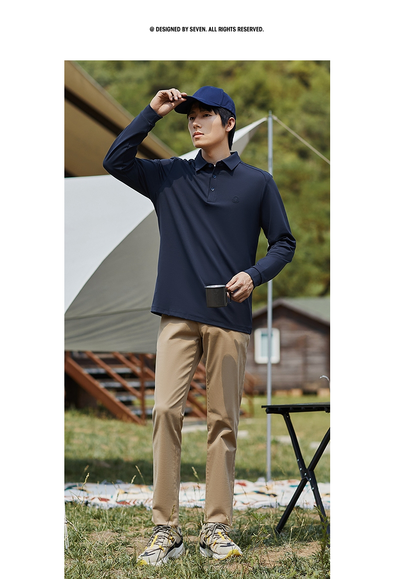【无缝工艺】柒牌磨毛长袖polo衫男2024秋冬新款时尚休闲翻领T恤127T70640