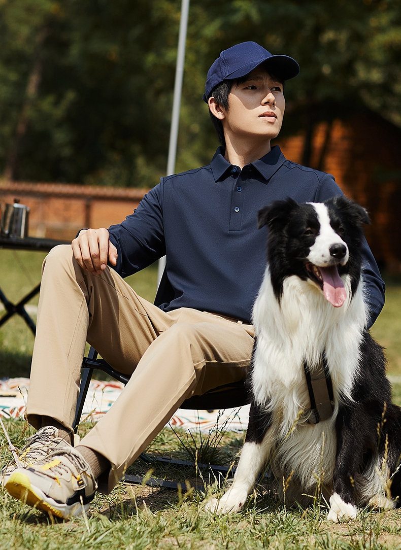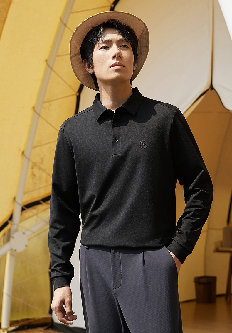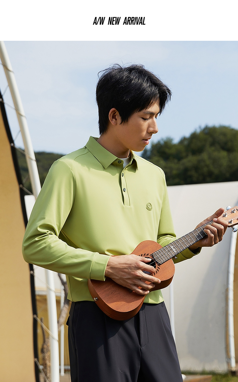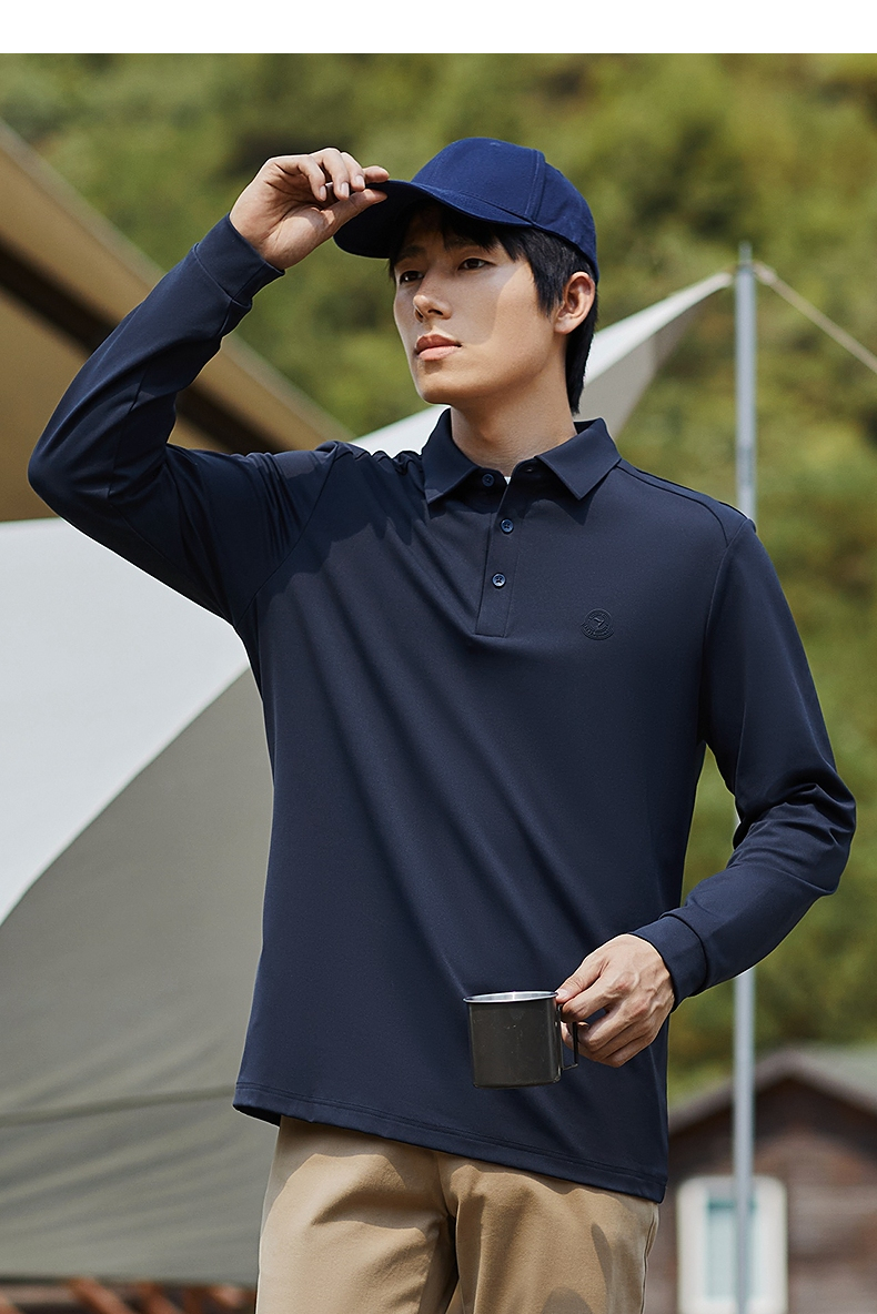 【无缝工艺】柒牌磨毛长袖polo衫男2024秋冬新款时尚休闲翻领T恤127T70640