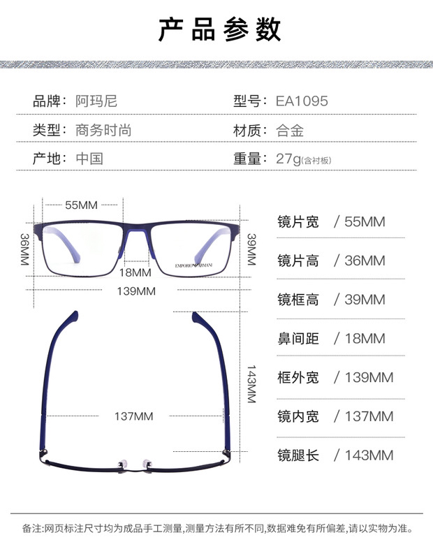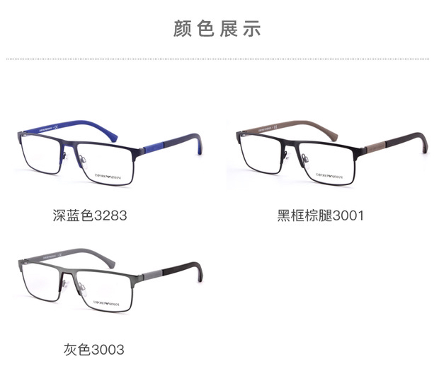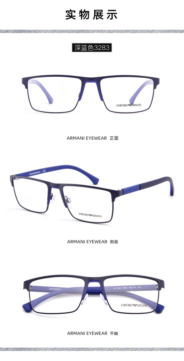 Emporio Armani光学镜架金属镜框+硅胶镜腿男款