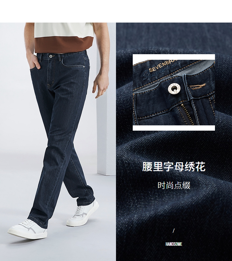【吸湿排汗】柒牌水洗牛仔裤男2024夏季新款休闲舒适中腰直筒长裤 126H72350