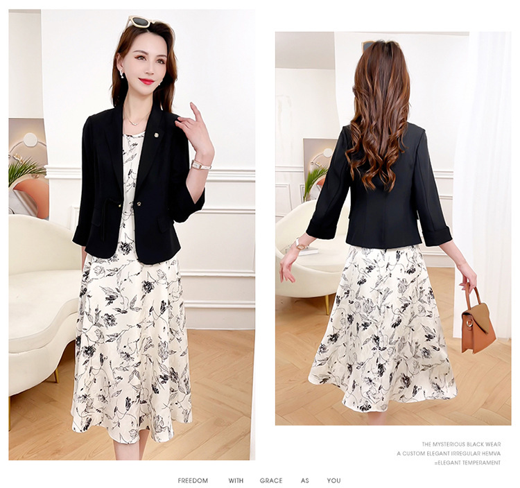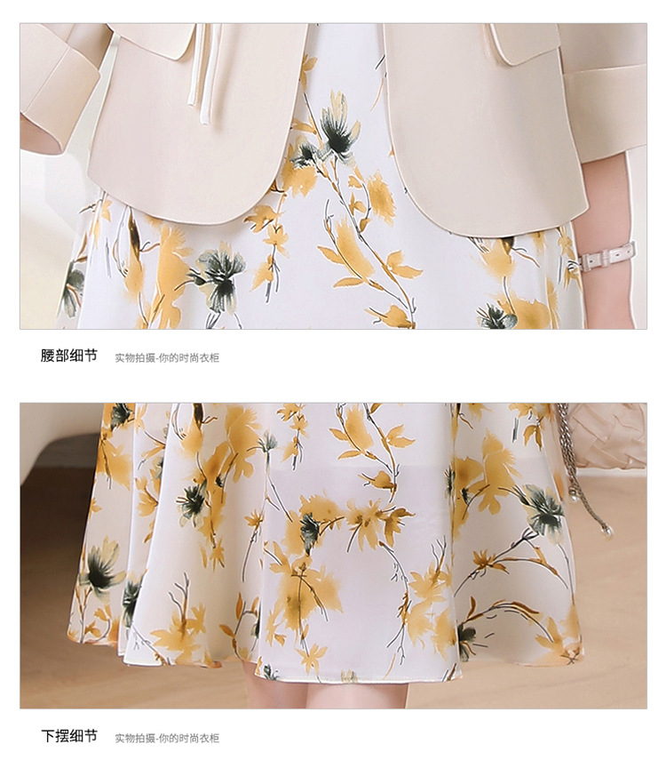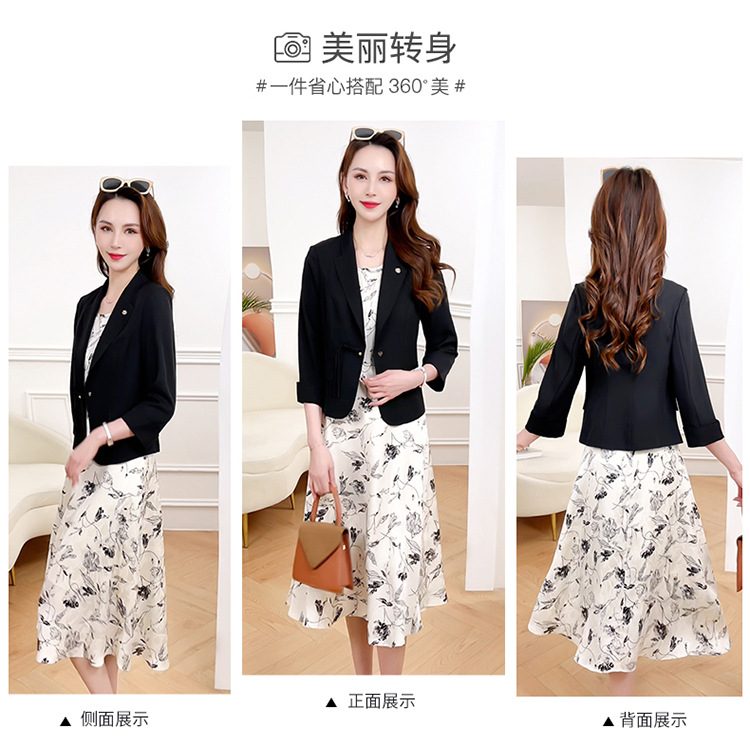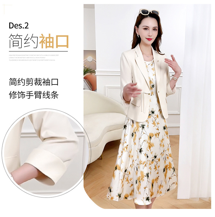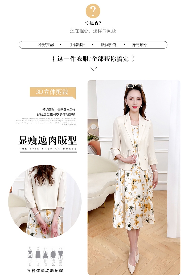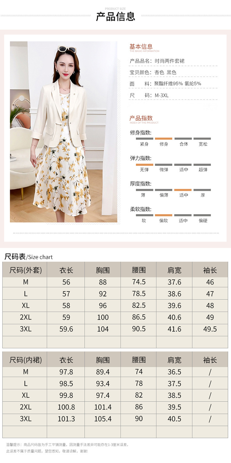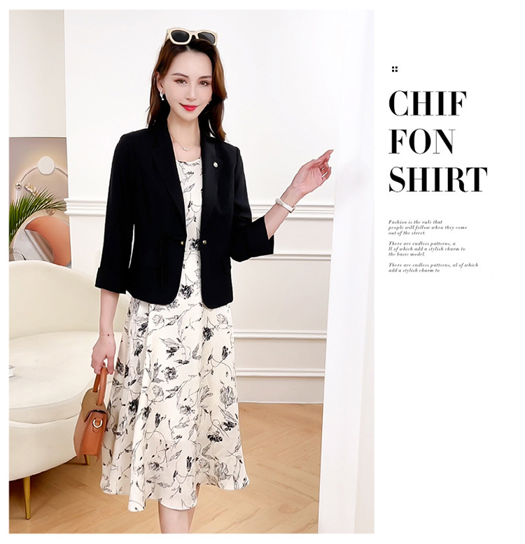 田园风印花内搭连衣裙,短款修身通勤时尚两件套QYM- XYKL-4870-L