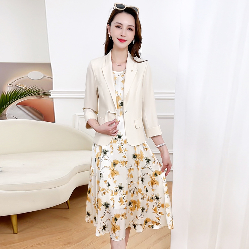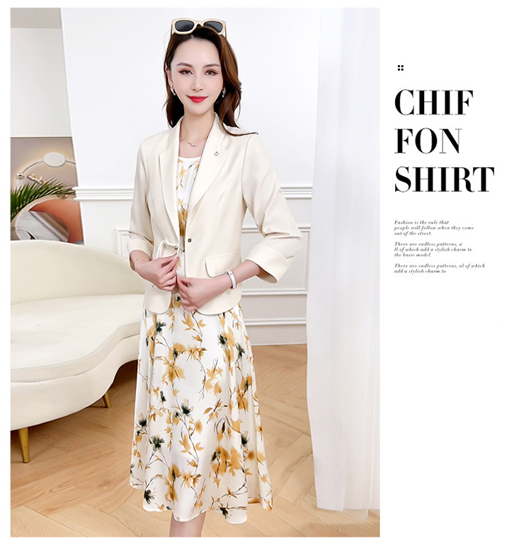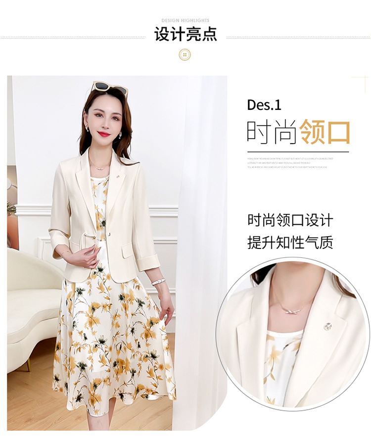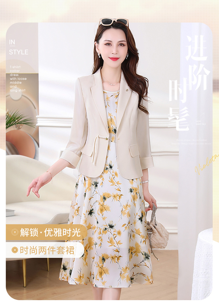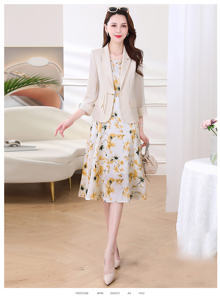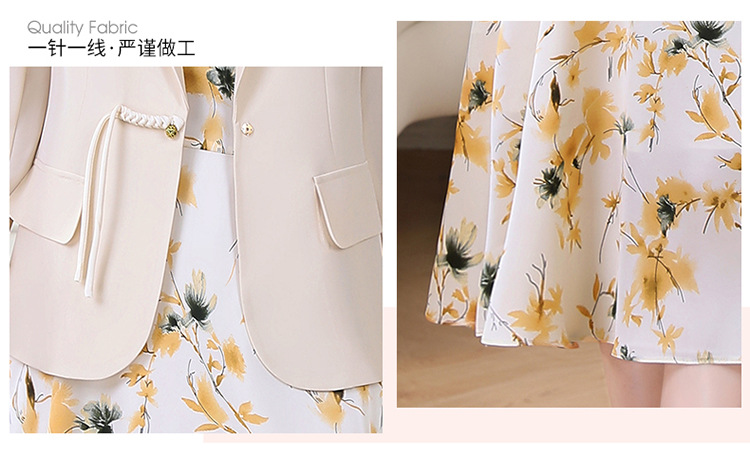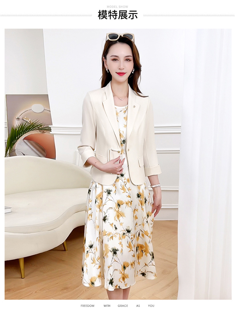 田园风印花内搭连衣裙,短款修身通勤时尚两件套QYM- XYKL-4870-L