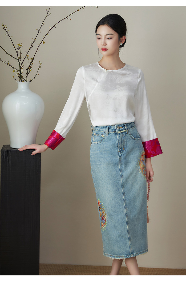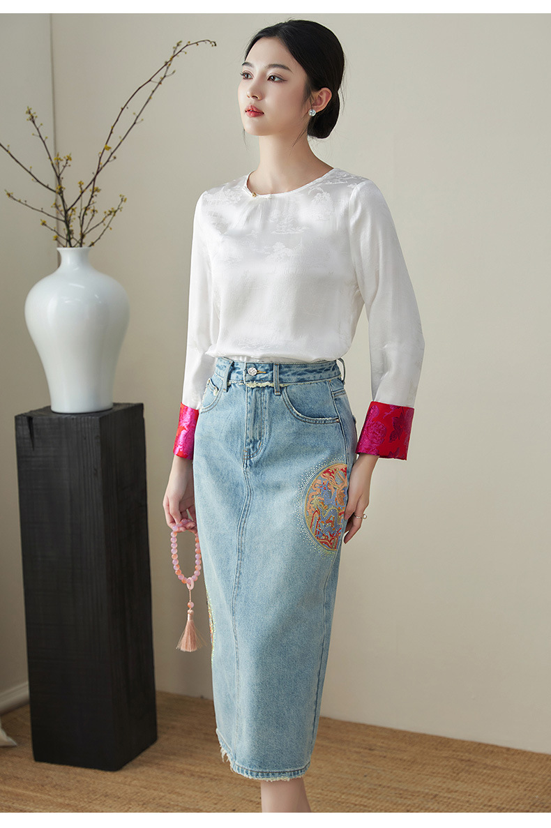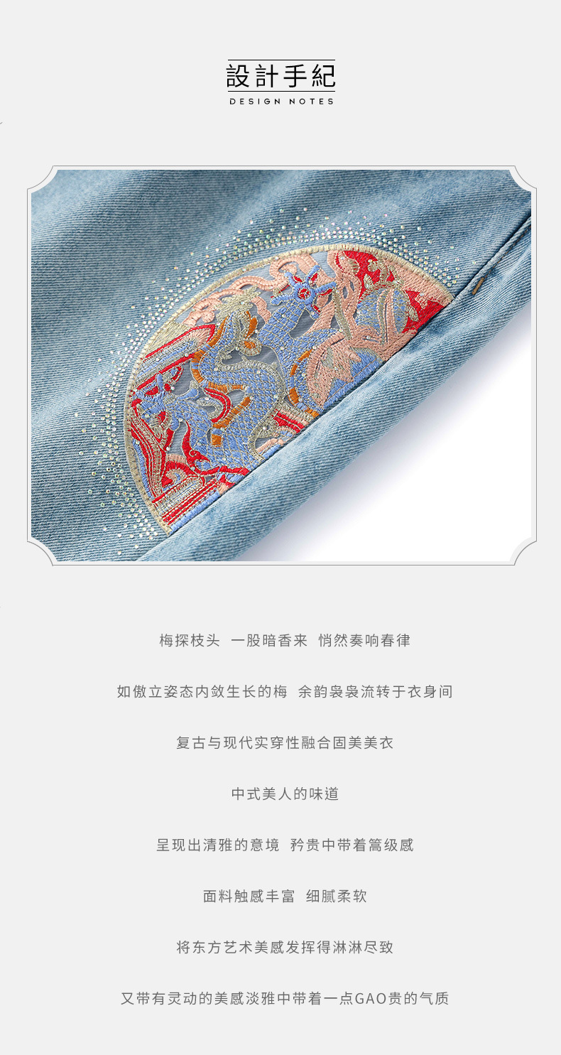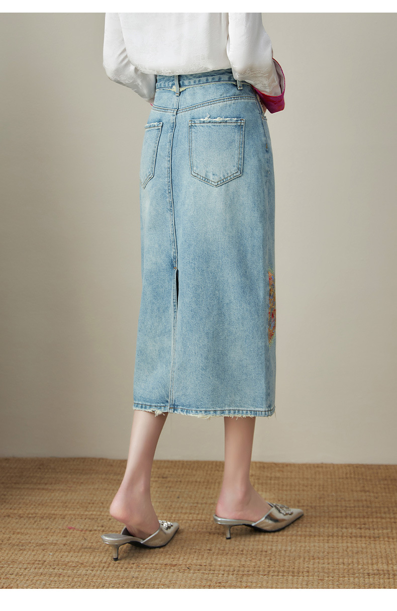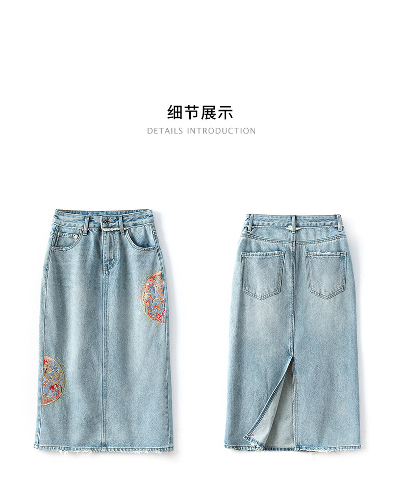 复古绣花烫钻轻奢,高腰牛仔半身裙WLZD-2411507