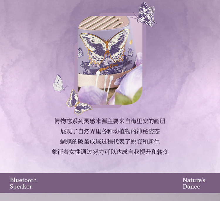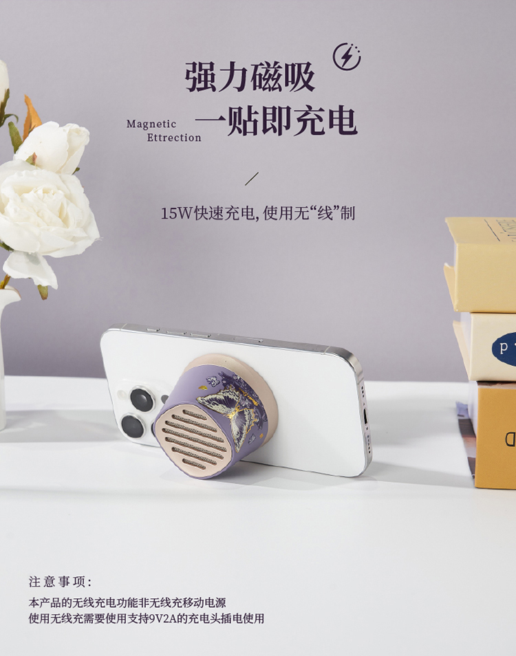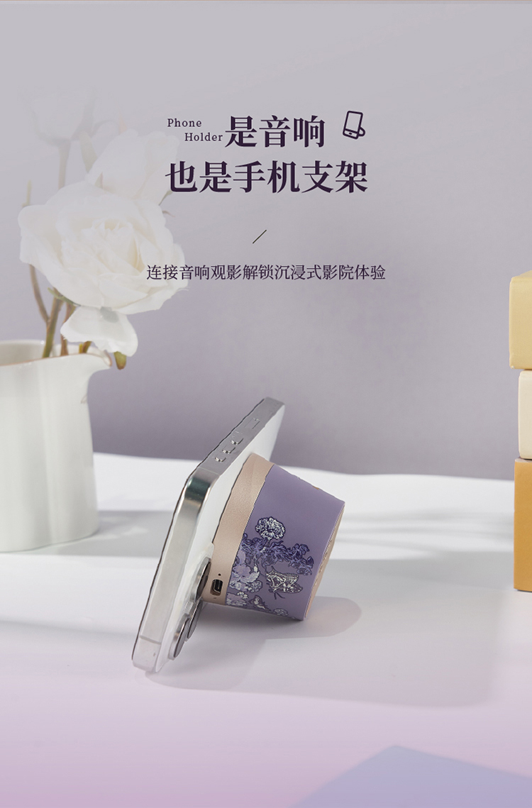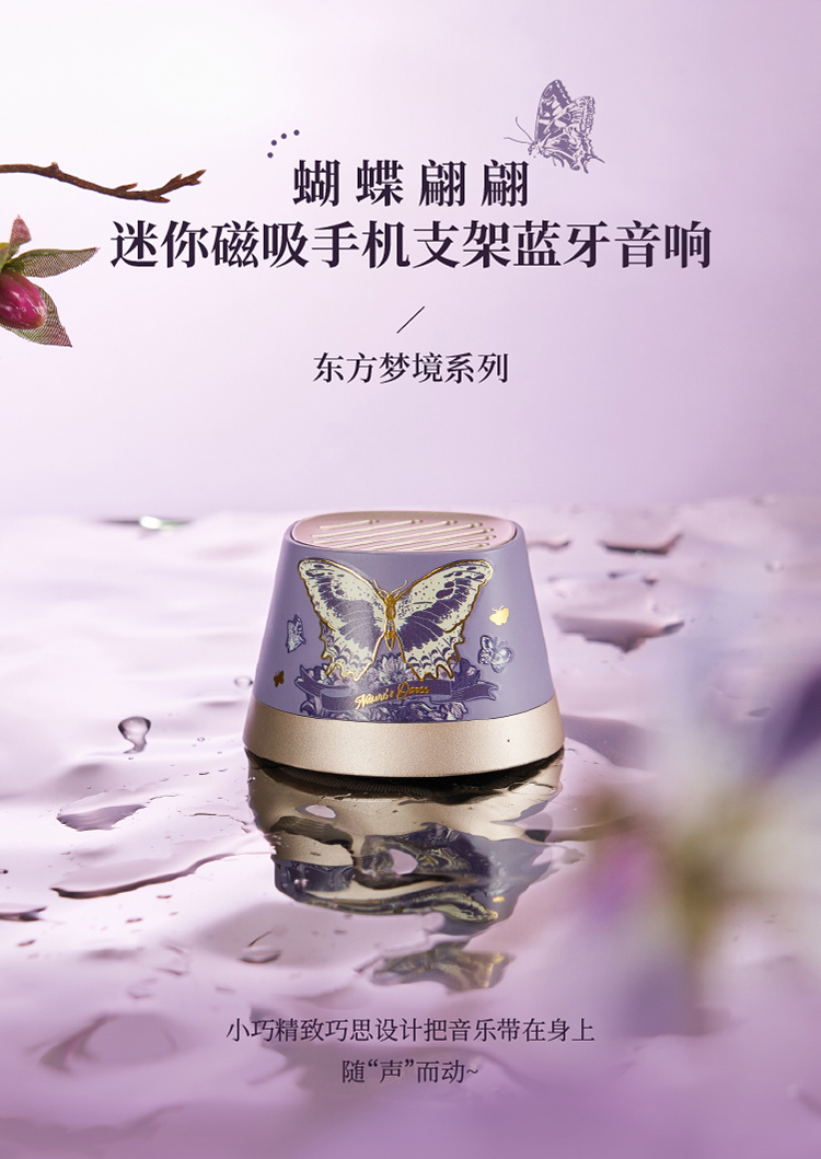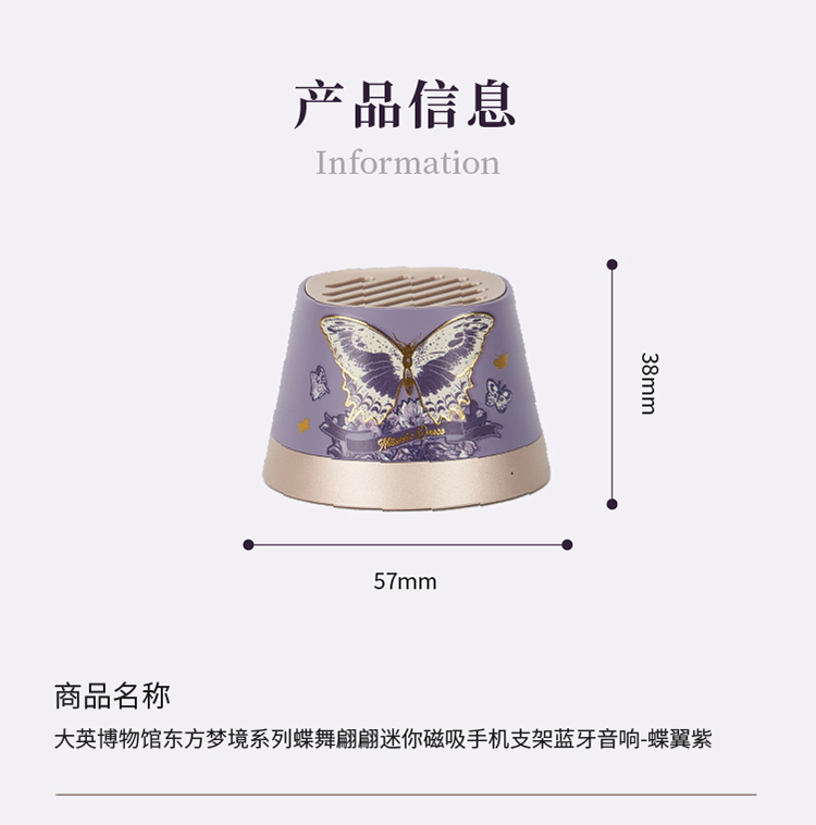 大英博物馆东方梦境系列蝶舞翩翩迷你磁吸手机支架蓝牙音响-蝶翼紫