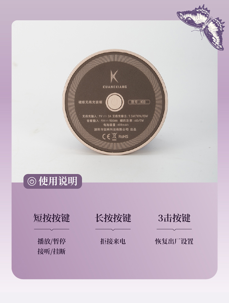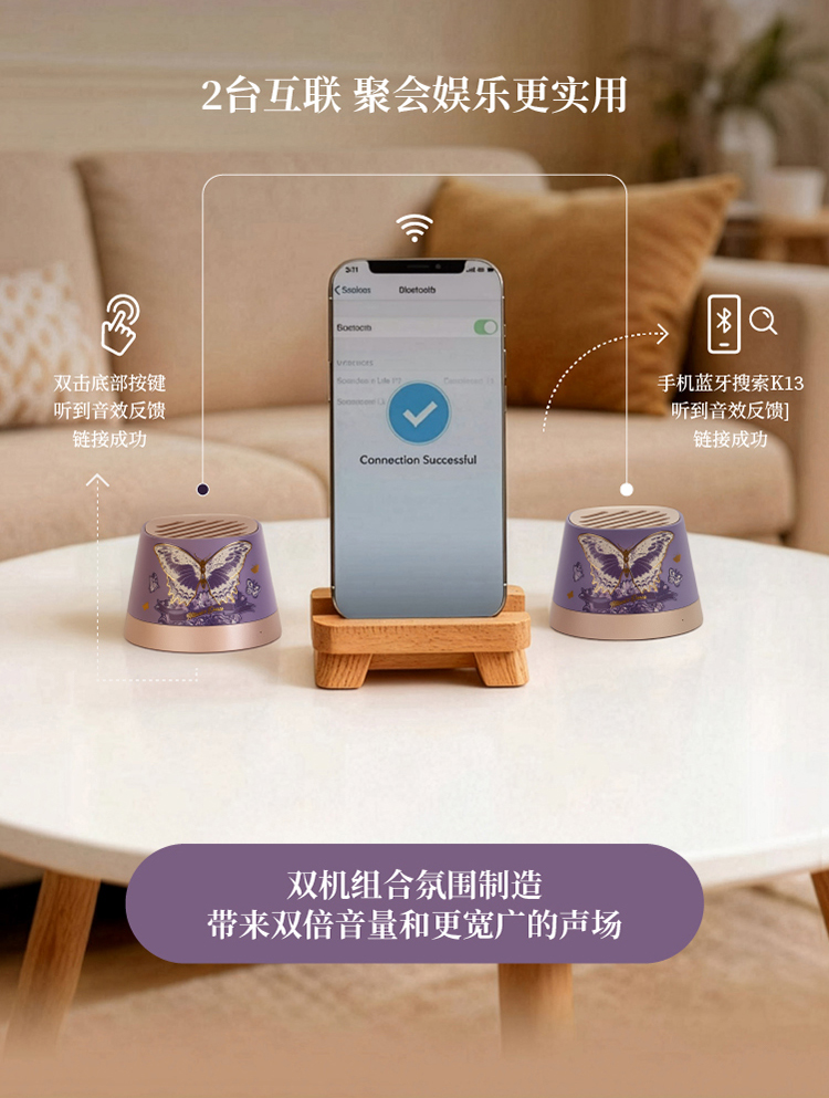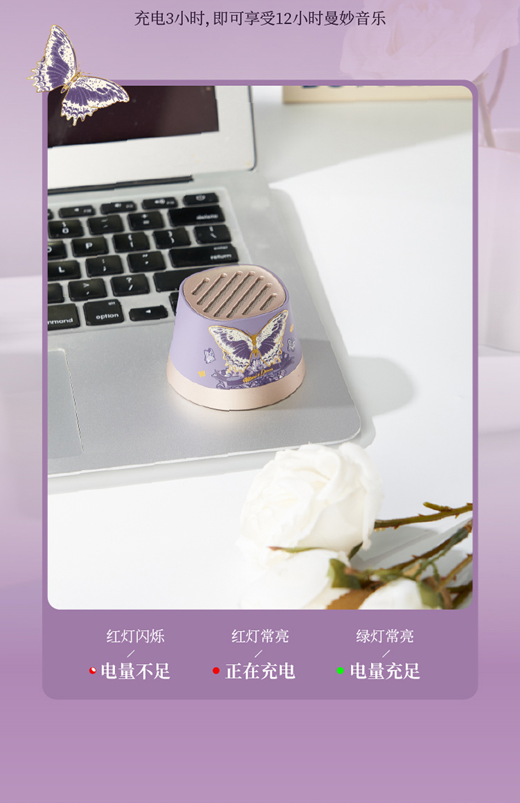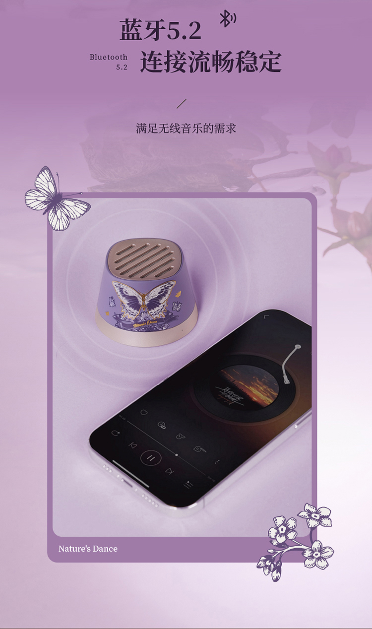 大英博物馆东方梦境系列蝶舞翩翩迷你磁吸手机支架蓝牙音响-蝶翼紫