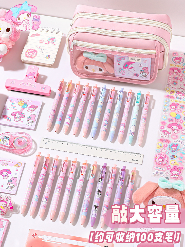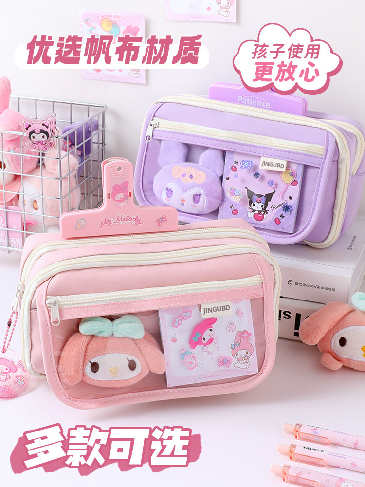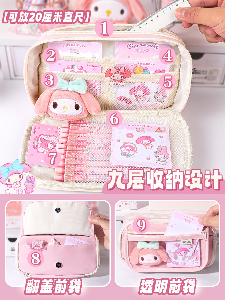 【巨能装❗卡片可做DIY装饰】开学季九层超大容量笔袋小学初中生送库洛米美乐蒂贴纸铅笔文具袋。rf