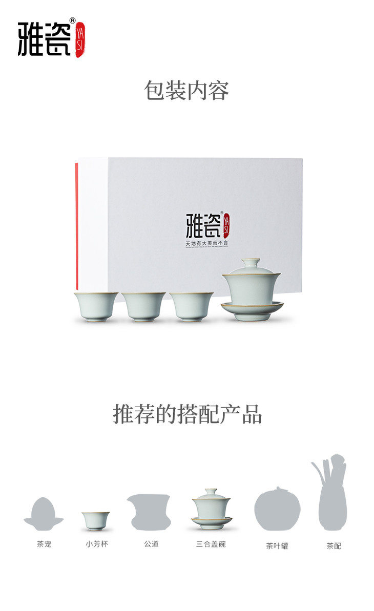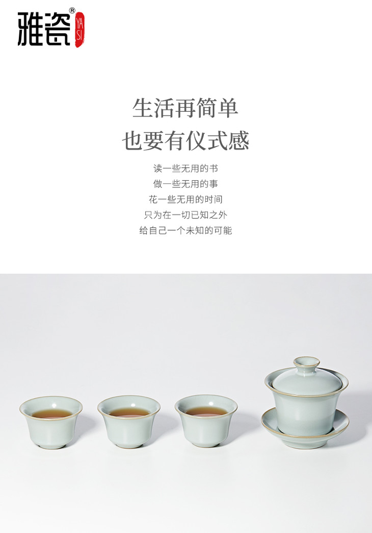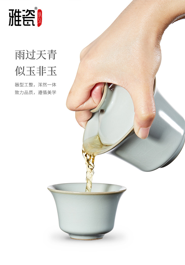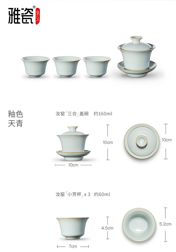 汝窑 三合盖碗小套装(一壶三杯)