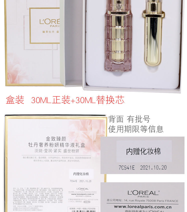 【预售 急单慎拍】欧莱雅金致臻颜牡丹奢养护肤精华30ml+30ml