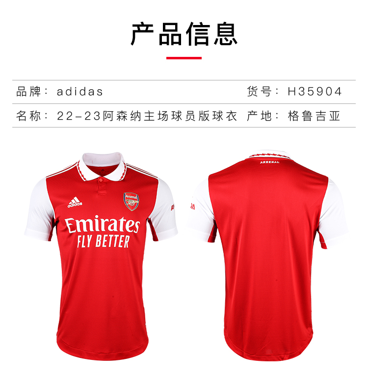 ADIDAS/阿迪达斯 AFC H AU JSY 阿森纳球员版足球短袖球衣H35904