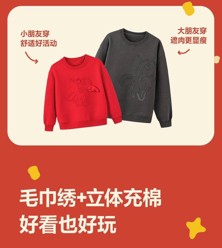 【亲子装 】迷你巴拉男女童卫衣2025春新品秋冬加绒长袖上衣