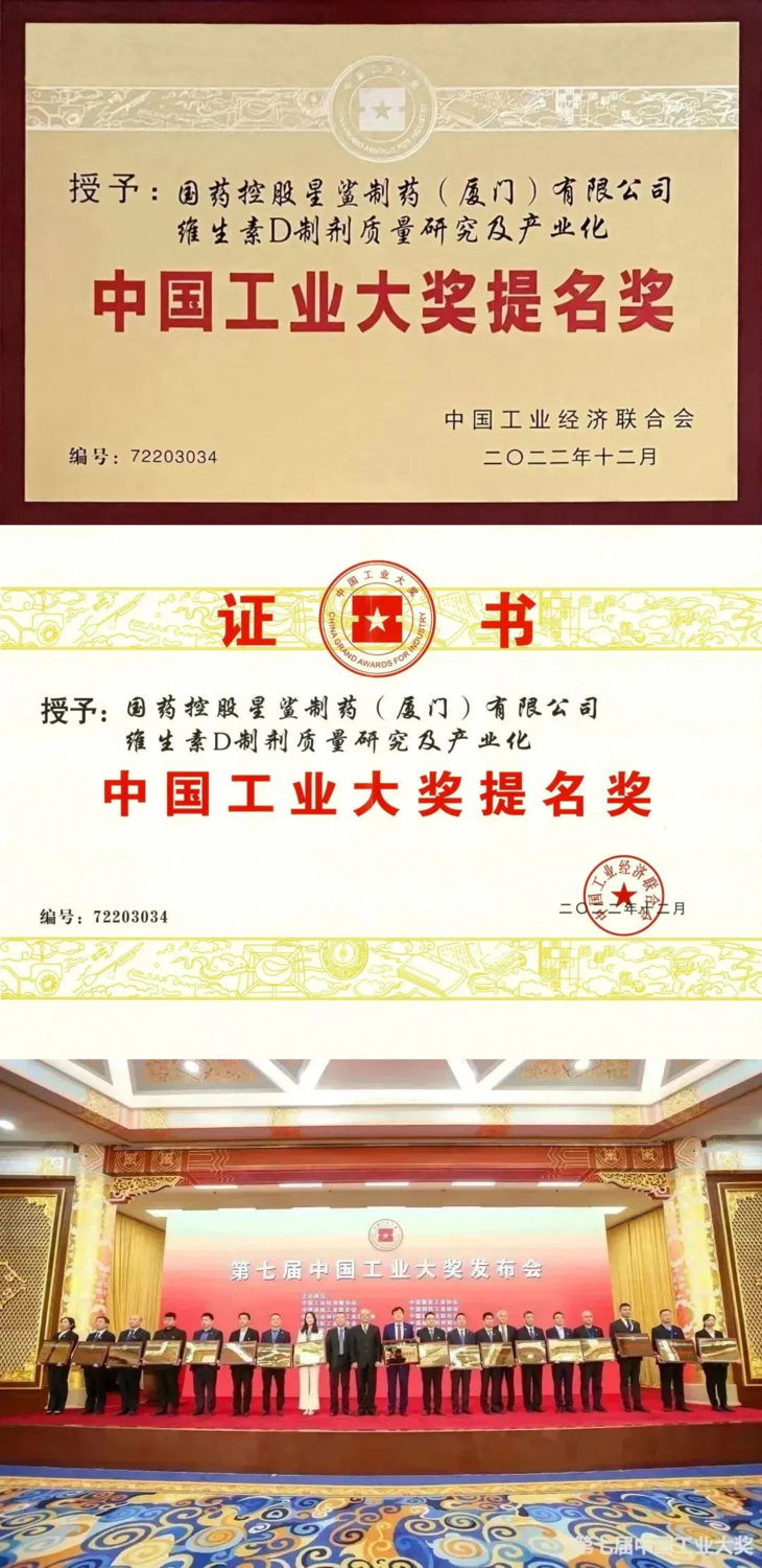2022 年,国药星鲨携手江南大学院士团队成立院士工作站 顶尖科研力量强势入驻,为产品研发注入新活力 不断带来更科学、更优质的母婴保健产品 在第七届中国工业大奖发布会上,国控星鲨荣获 “中国工业大奖提名奖” 🏆 这是对其在工业制造领域卓越表现的高度认可!