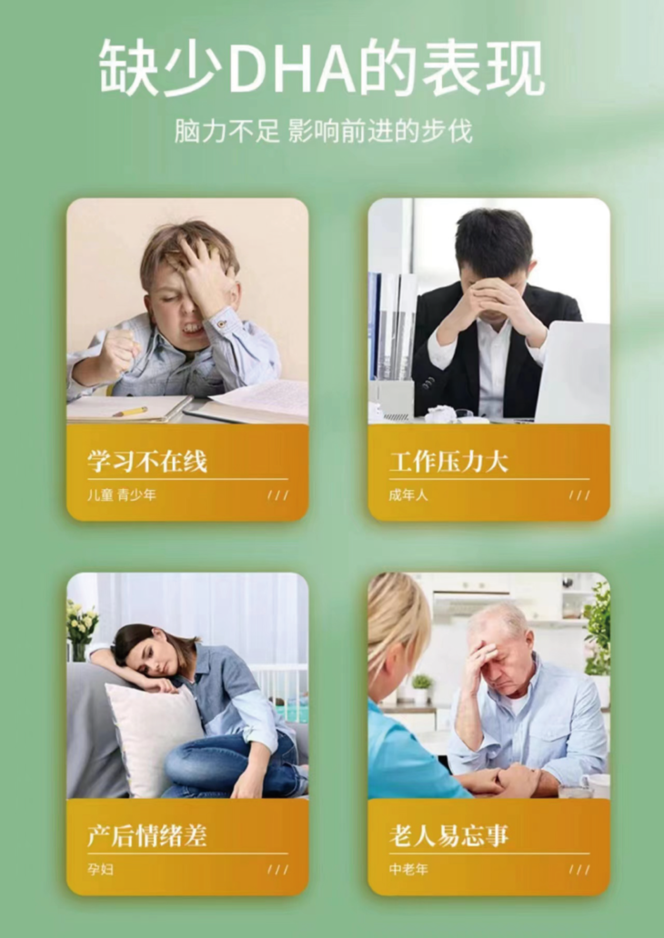 还在为孩子注意力不集中,反应迟钝苦恼嘛 有可能是缺乏DHA哦 尽早补充DHA,给孩子一个更好的起跑线❗ 贴心打造,营养均衡,为孩子的未来“加分”😏 学习压力大,孩子上课不集中,担心❗ 电子产品使用过度,孩子视力下降,担心❗❗ 孩子抵抗力差,容易生病,担心❗❗❗ DHA营养“短板”,导致孩子成长跟不上😩 适量补充DHA,记忆力➕视力➕抵抗力➕
