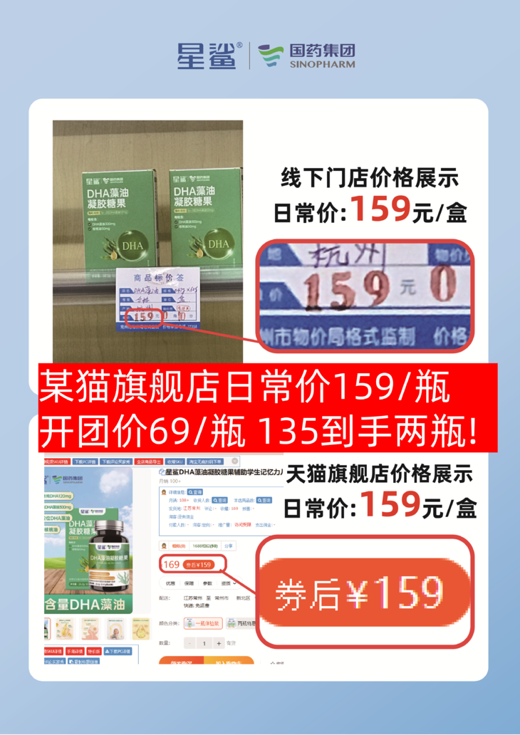 正品保障‼️【星鲨 DHA藻油凝胶糖果】☀️ 记忆·思维·专注力UP UP UP❗️ 某猫官旗日常价💰159/瓶 开团价💰69/瓶 135到手两瓶!