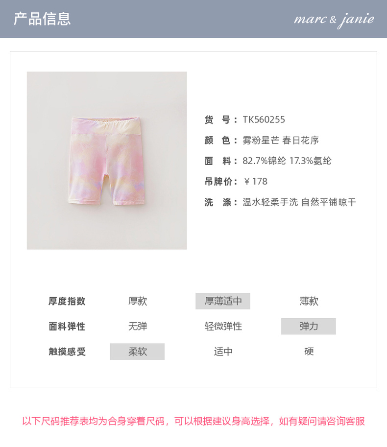 马克珍妮夏日幻彩女童运动骑行短裤2026年春装新款560255
