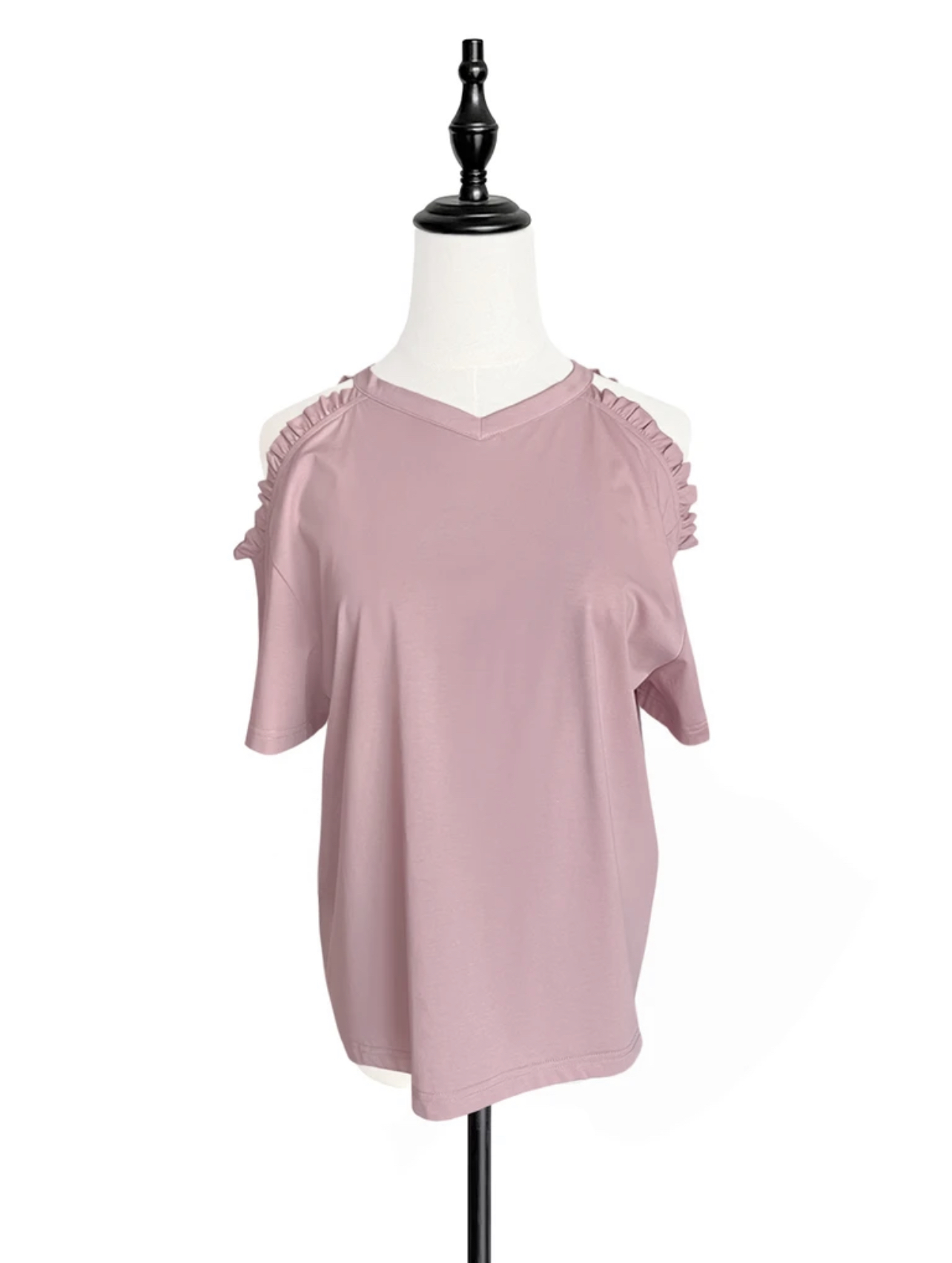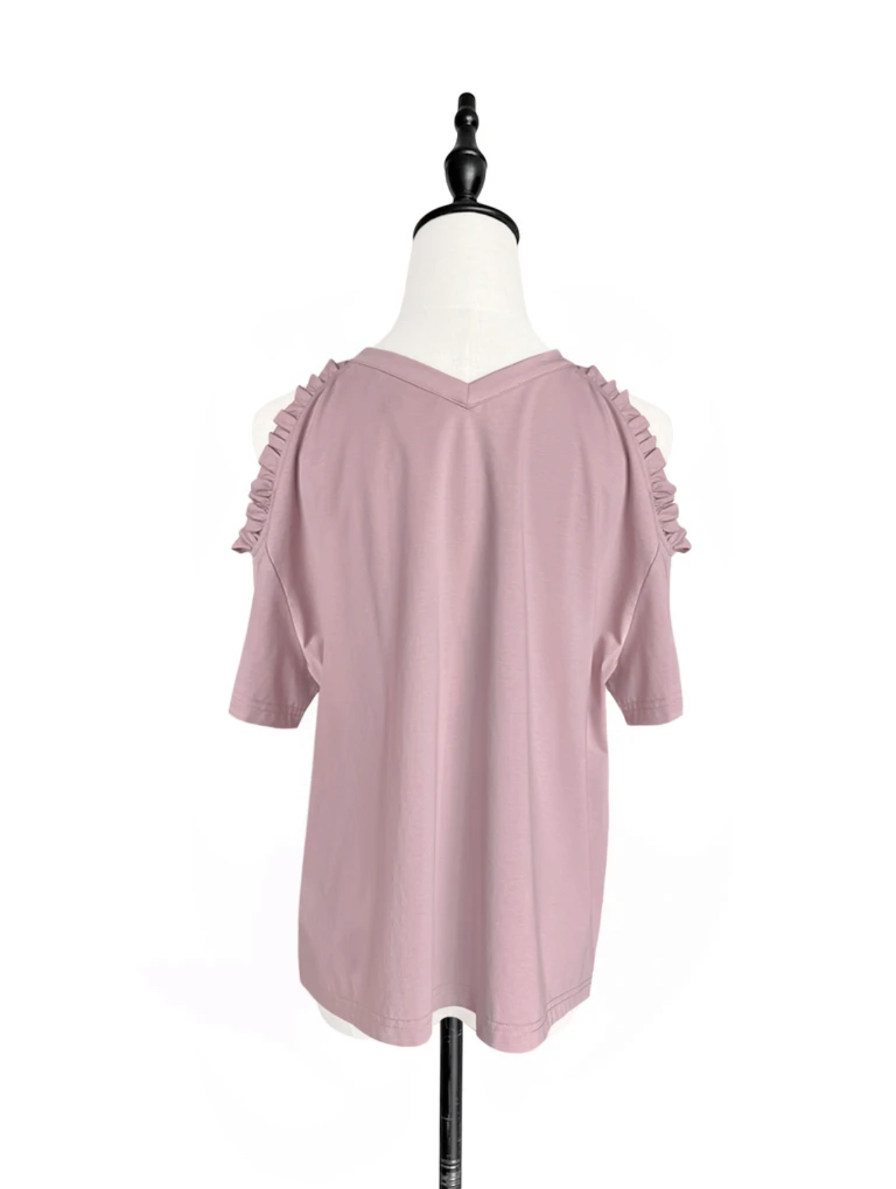 TYNVIE 露肩花边装饰短袖T恤 - 粉色