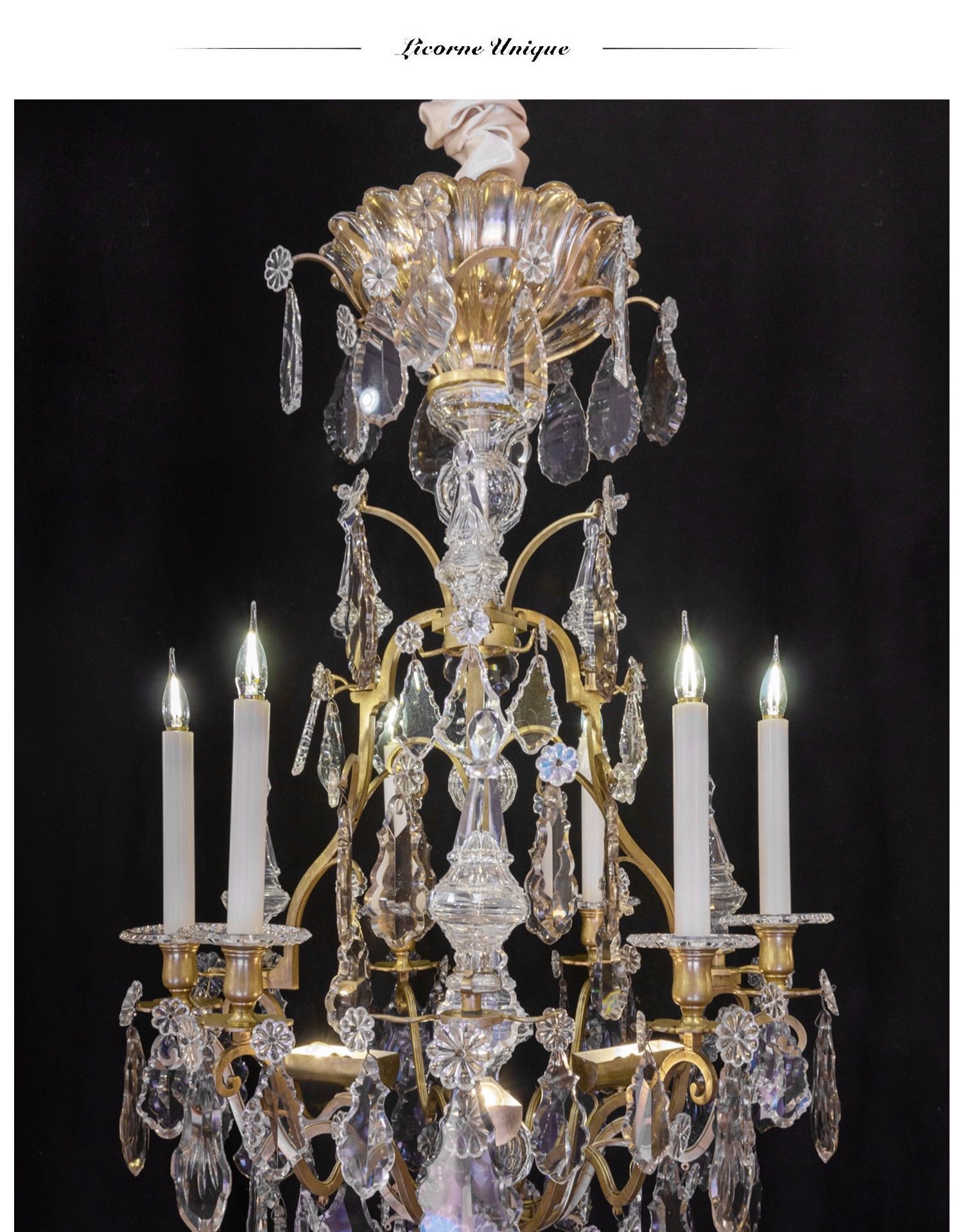 独角鹿西洋古董法国路易十五风格烛台造型铜鎏金巴卡拉水晶吊灯