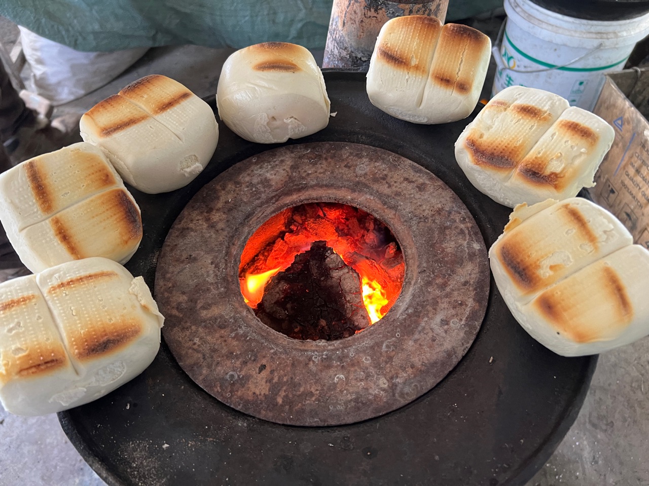牧区人民,家里有条件的,可以这样烤馒头,馒头蘸着牛肉汤非常香