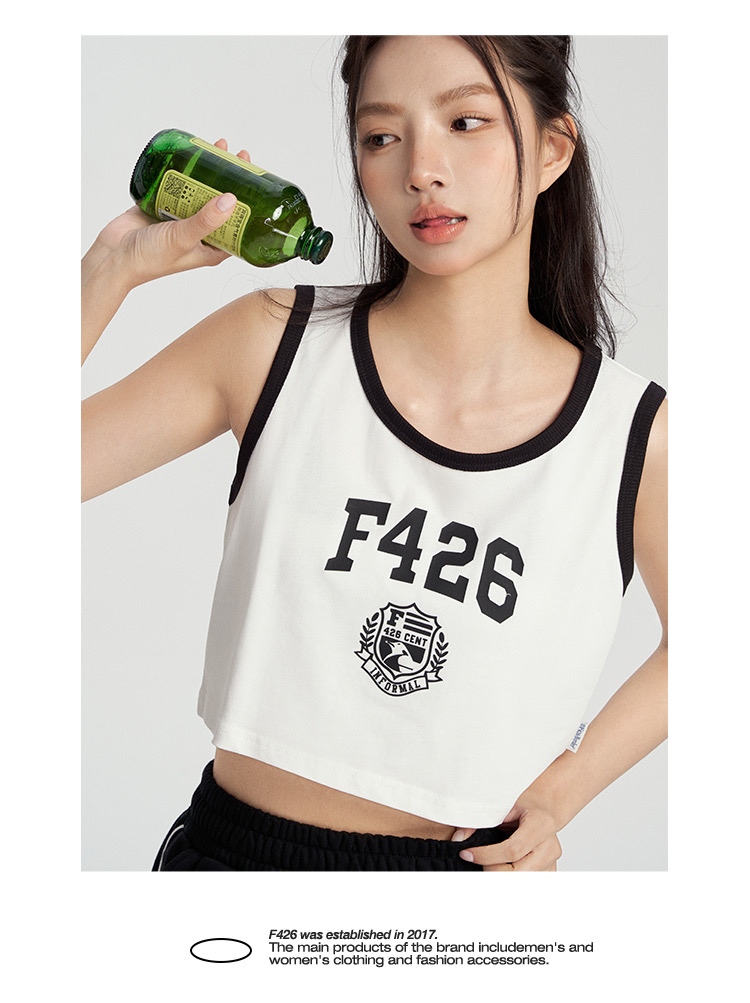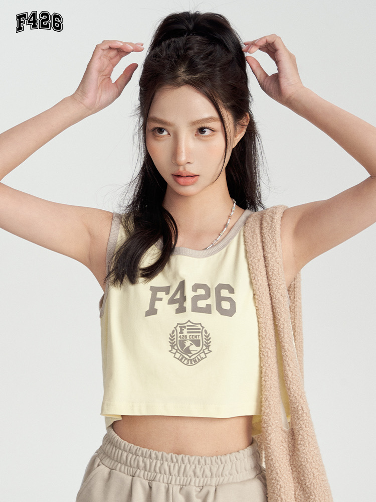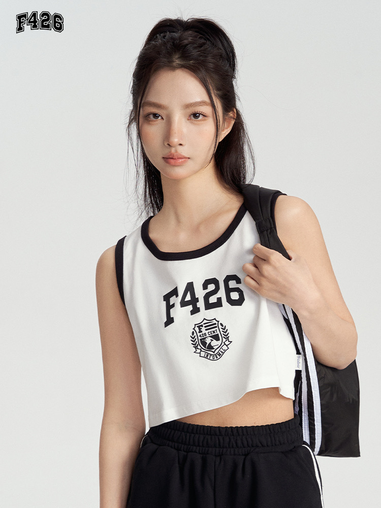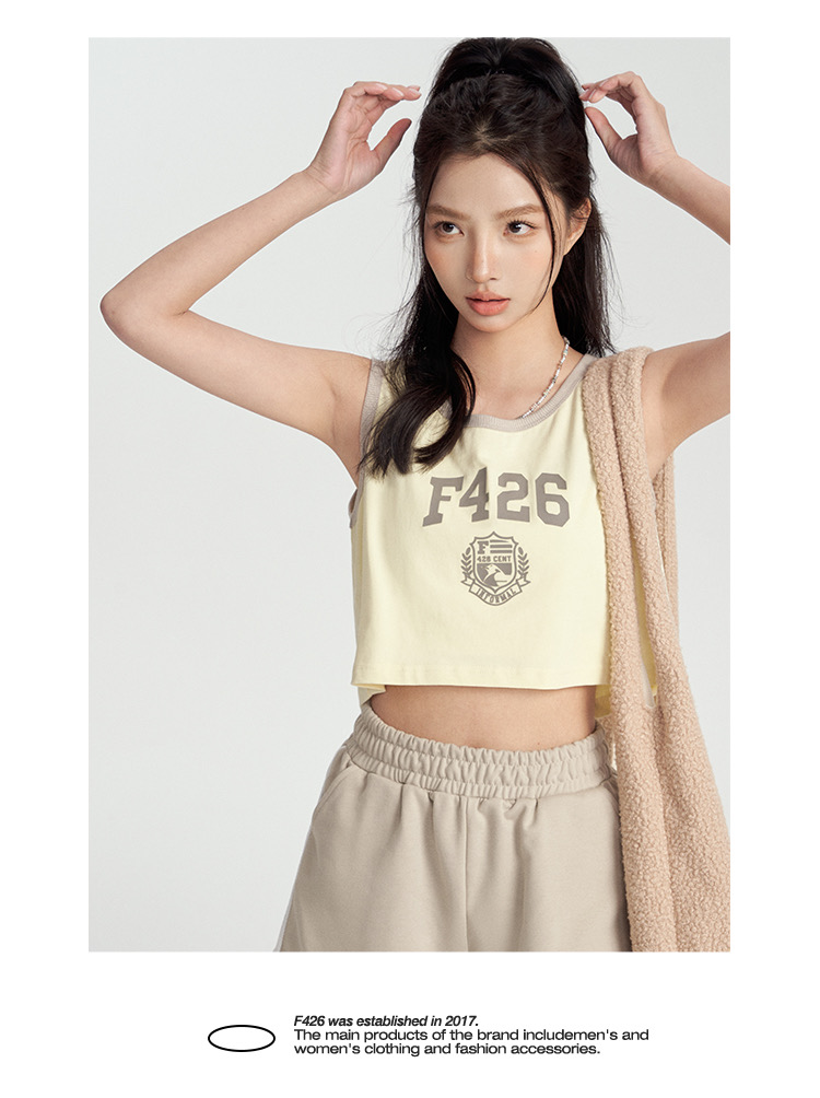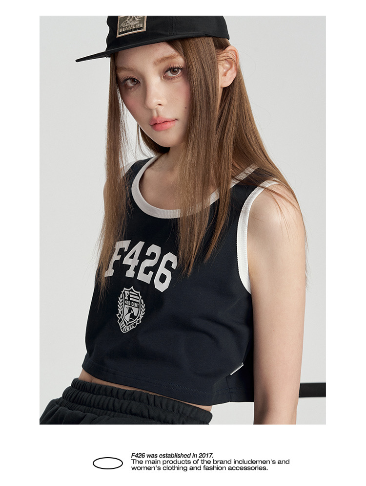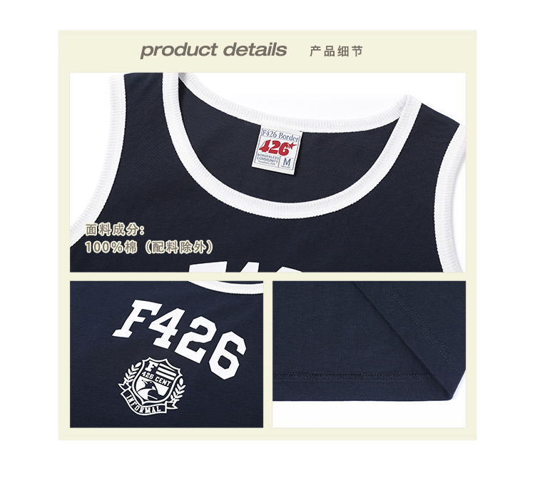 特!F426* 纯元,复古 美式 字母徽章logo,纯棉运动背心~