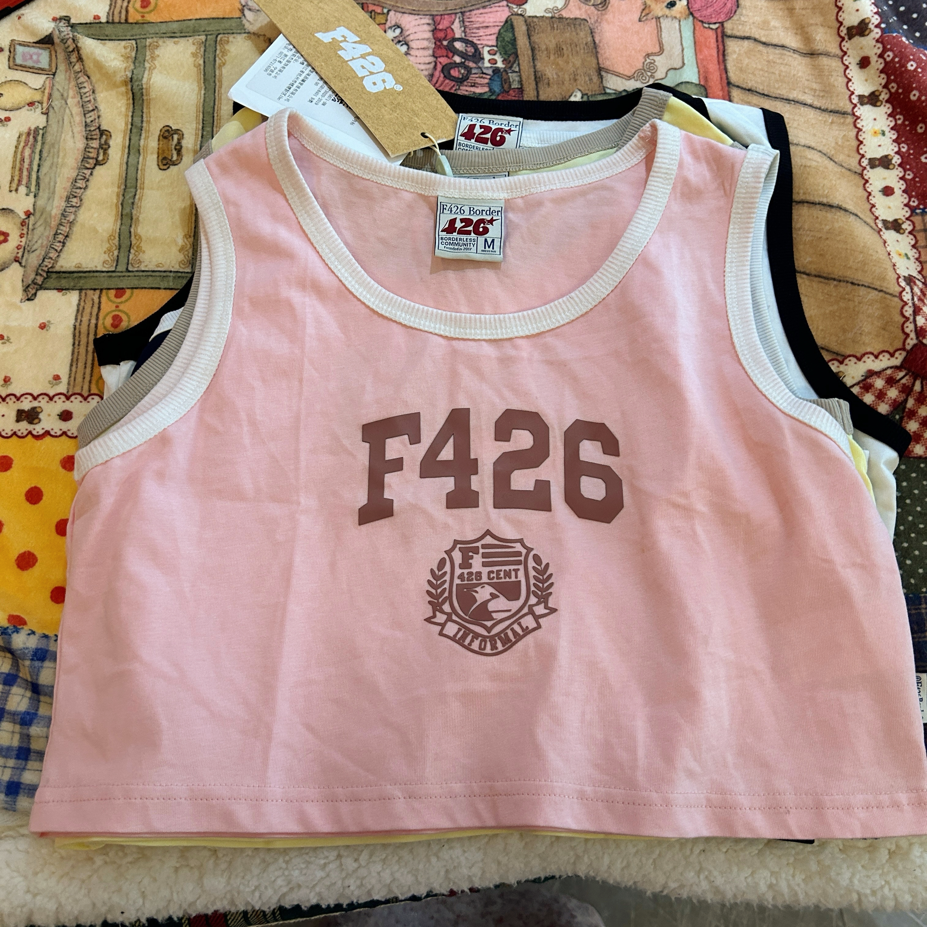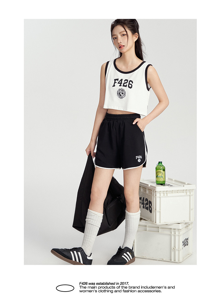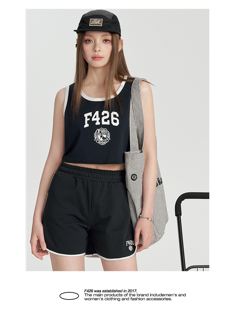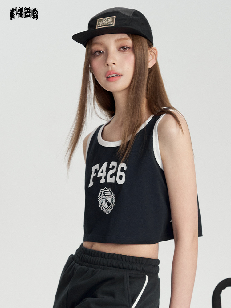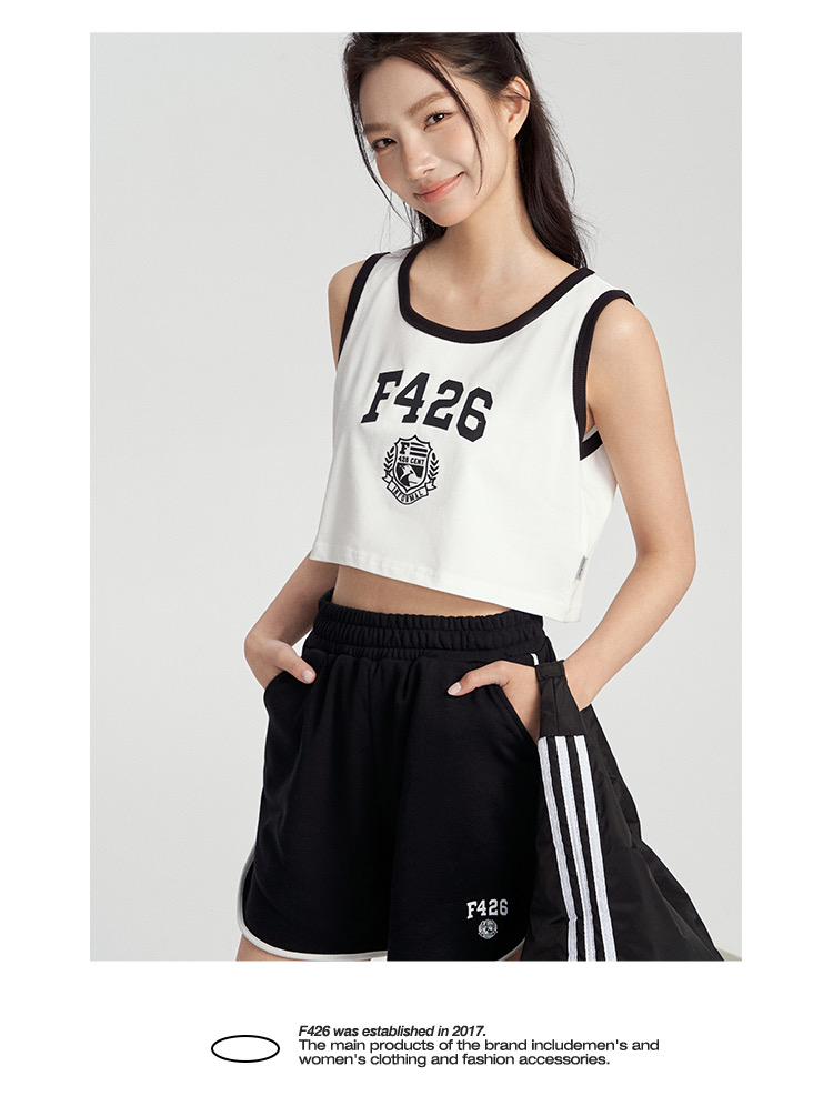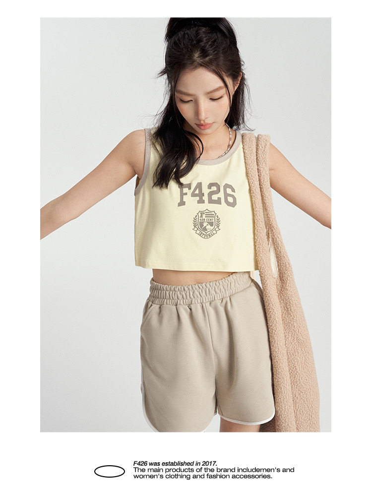 特!F426* 纯元,复古 美式 字母徽章logo,纯棉运动背心~