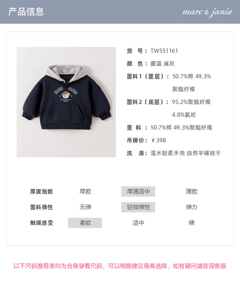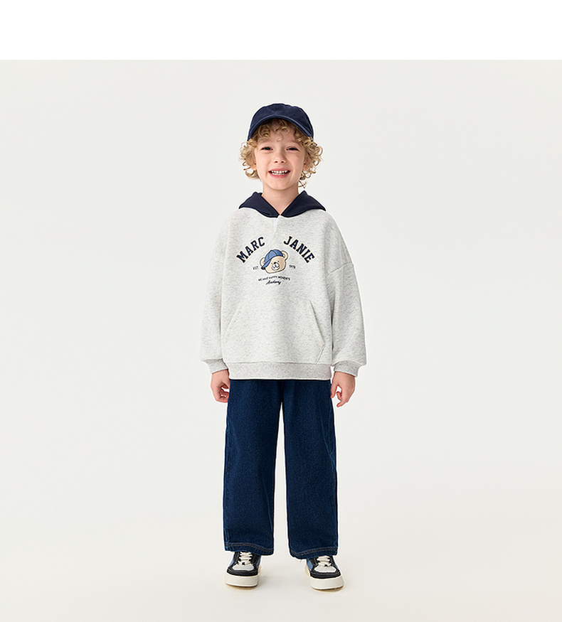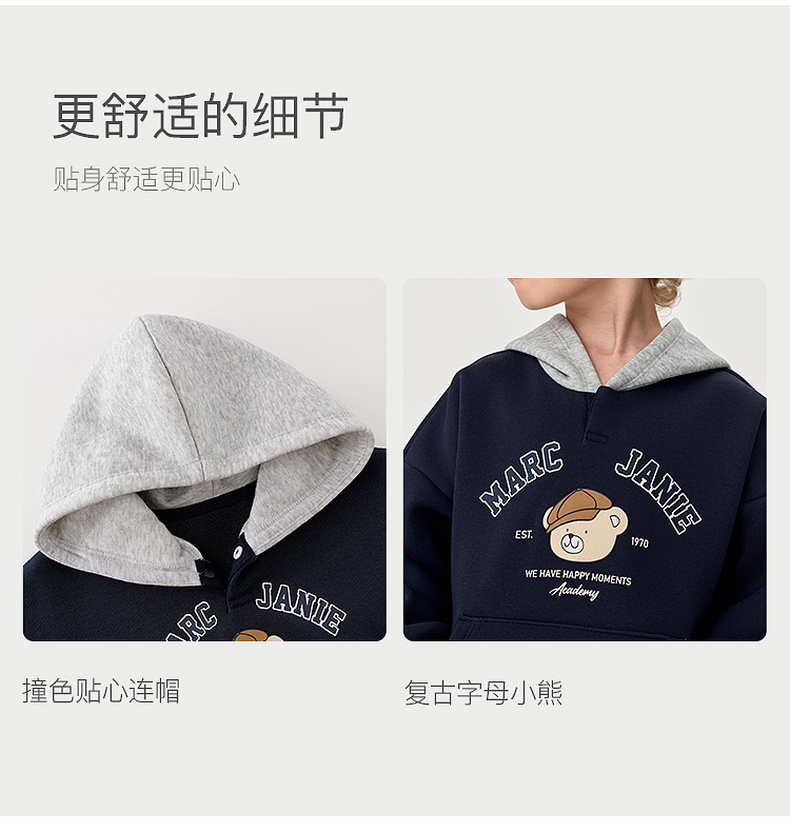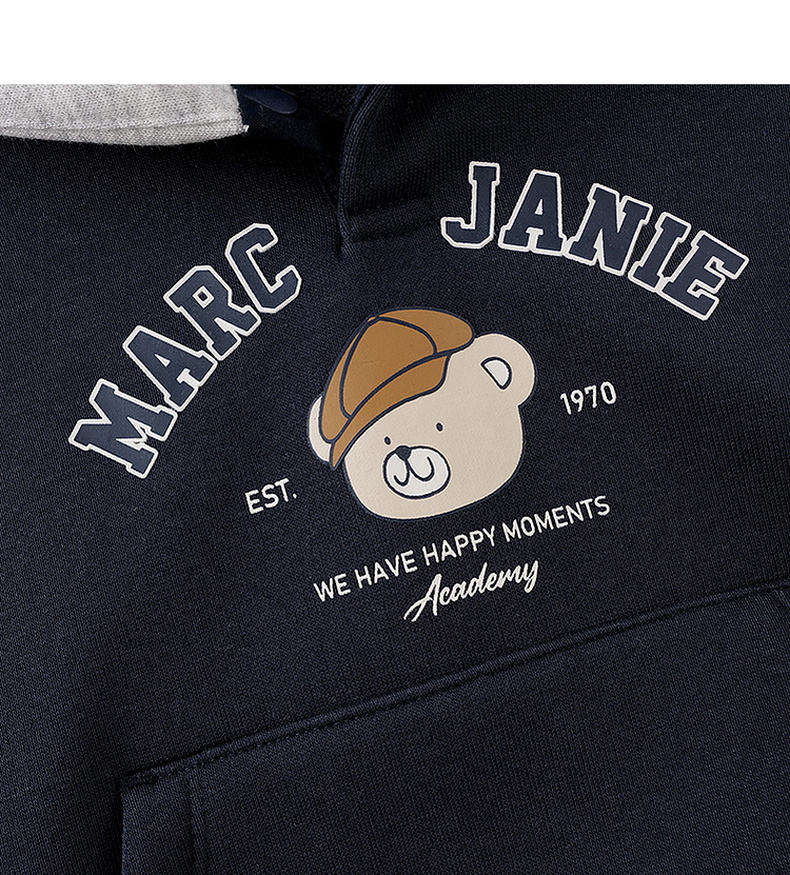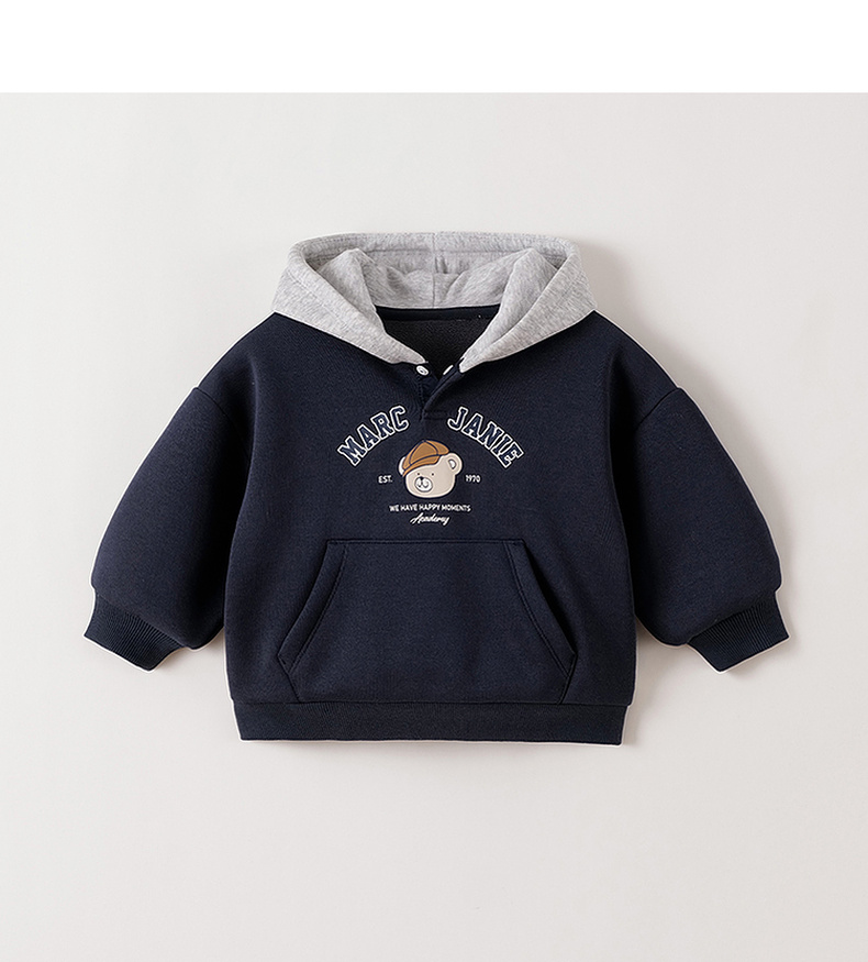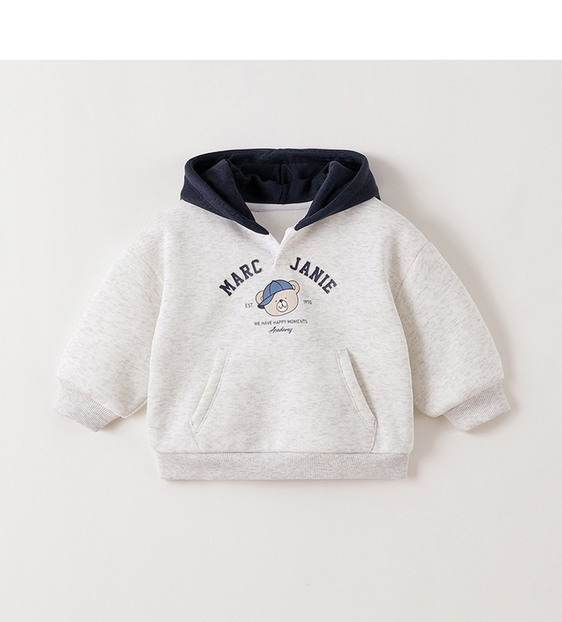 马克珍妮男童复古小熊奥利绒连帽卫衣2025年秋冬新款551161