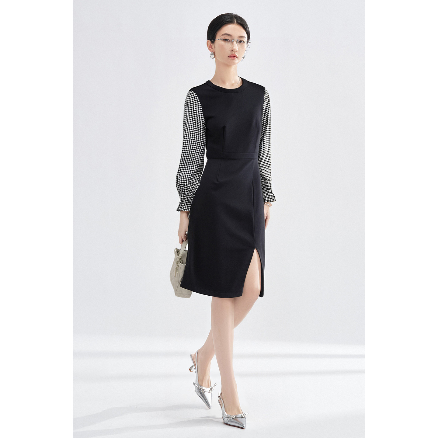 剩XXL 米思阳2026春季新款时尚通勤长袖修身显瘦气质女神连衣裙女1028