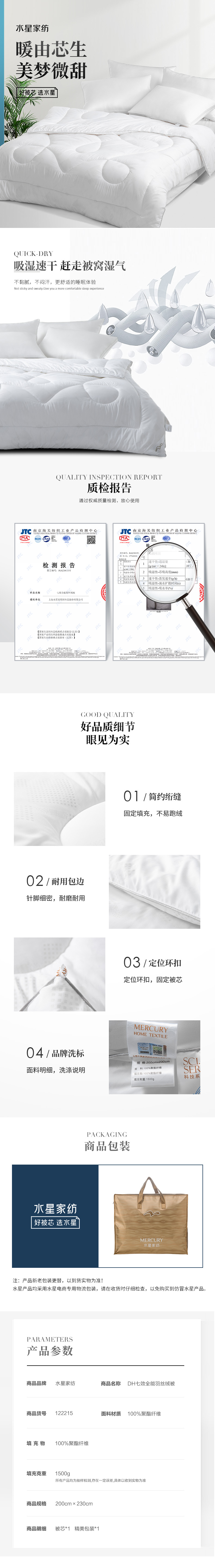 水星家纺七效全能羽丝绒被【分仓直发,72小时发货,周末节假日不发货】