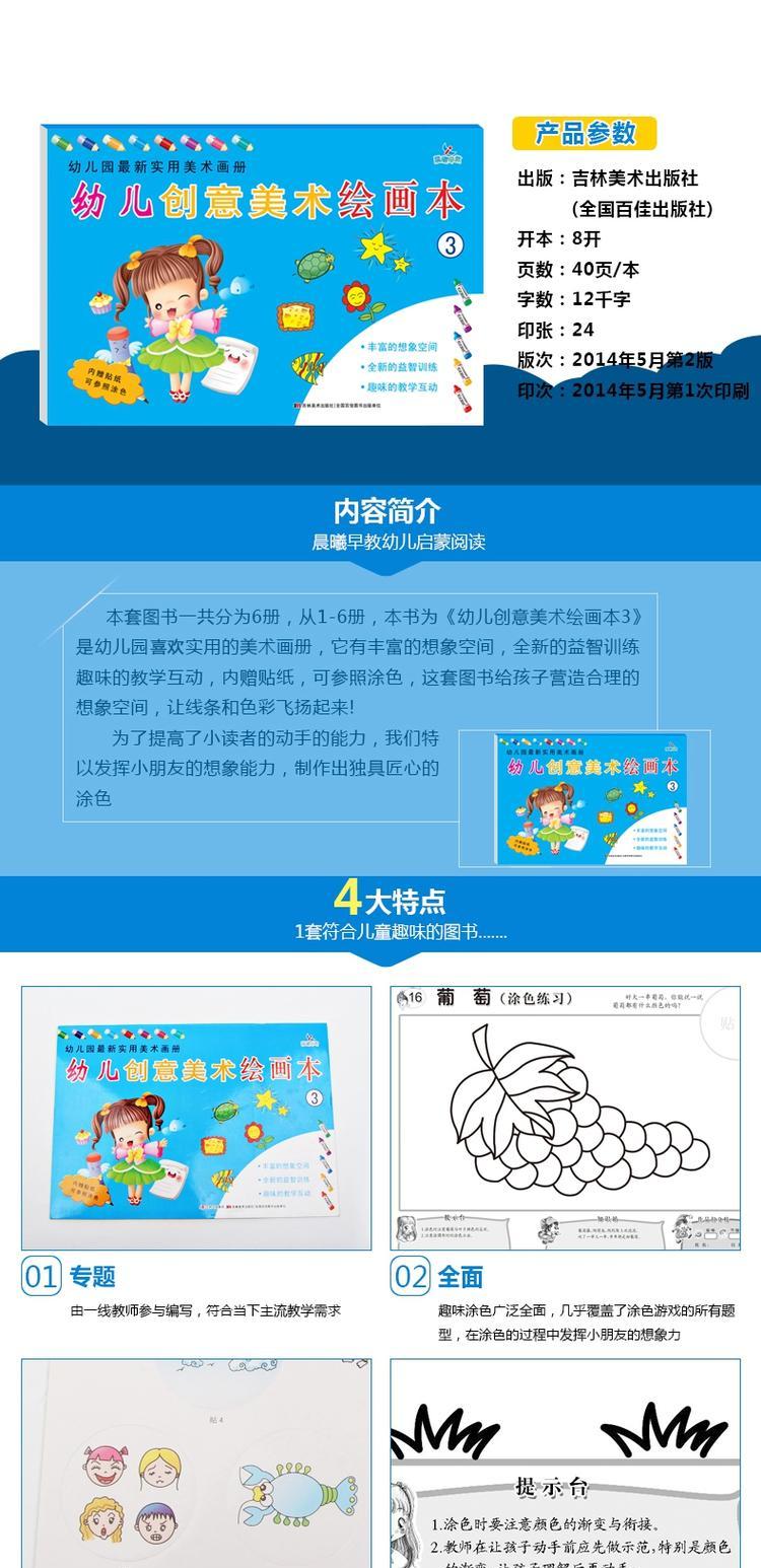 幼儿创意美术绘画本3 3-6岁儿童专享 丰富的想象空间全新的益智训练趣味的教学互动 内贴纸可参照涂色