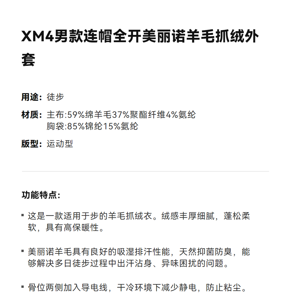 KAILAS凯乐石 XM4男款连帽全开美丽诺羊毛抓绒外套 KG2532199