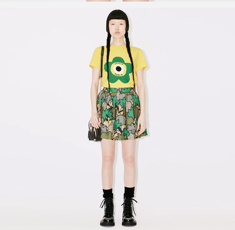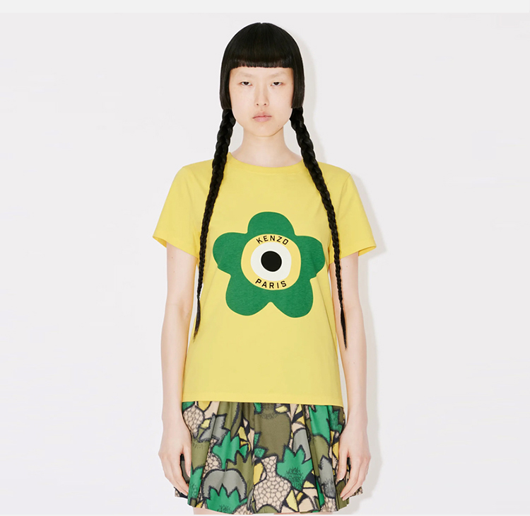 KENZO 高田贤三 女士花卉印花棉质圆领短袖T恤 黄色 FD62 TS062 4SO 39