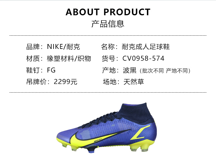 SFS耐克正品刺客14 Elite FG高端高帮天然草男子足球鞋CV0958-574