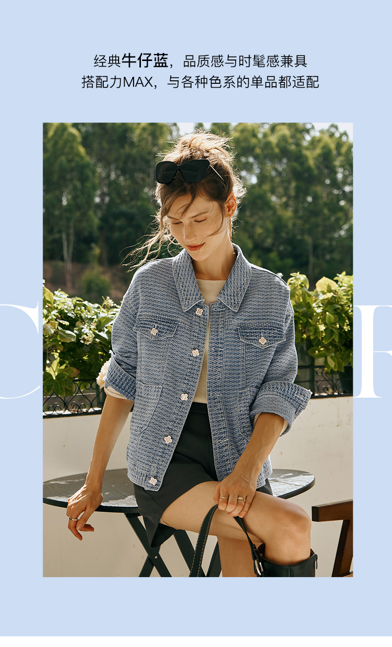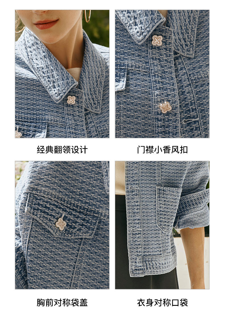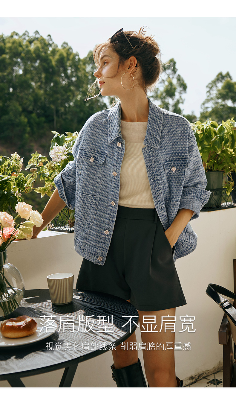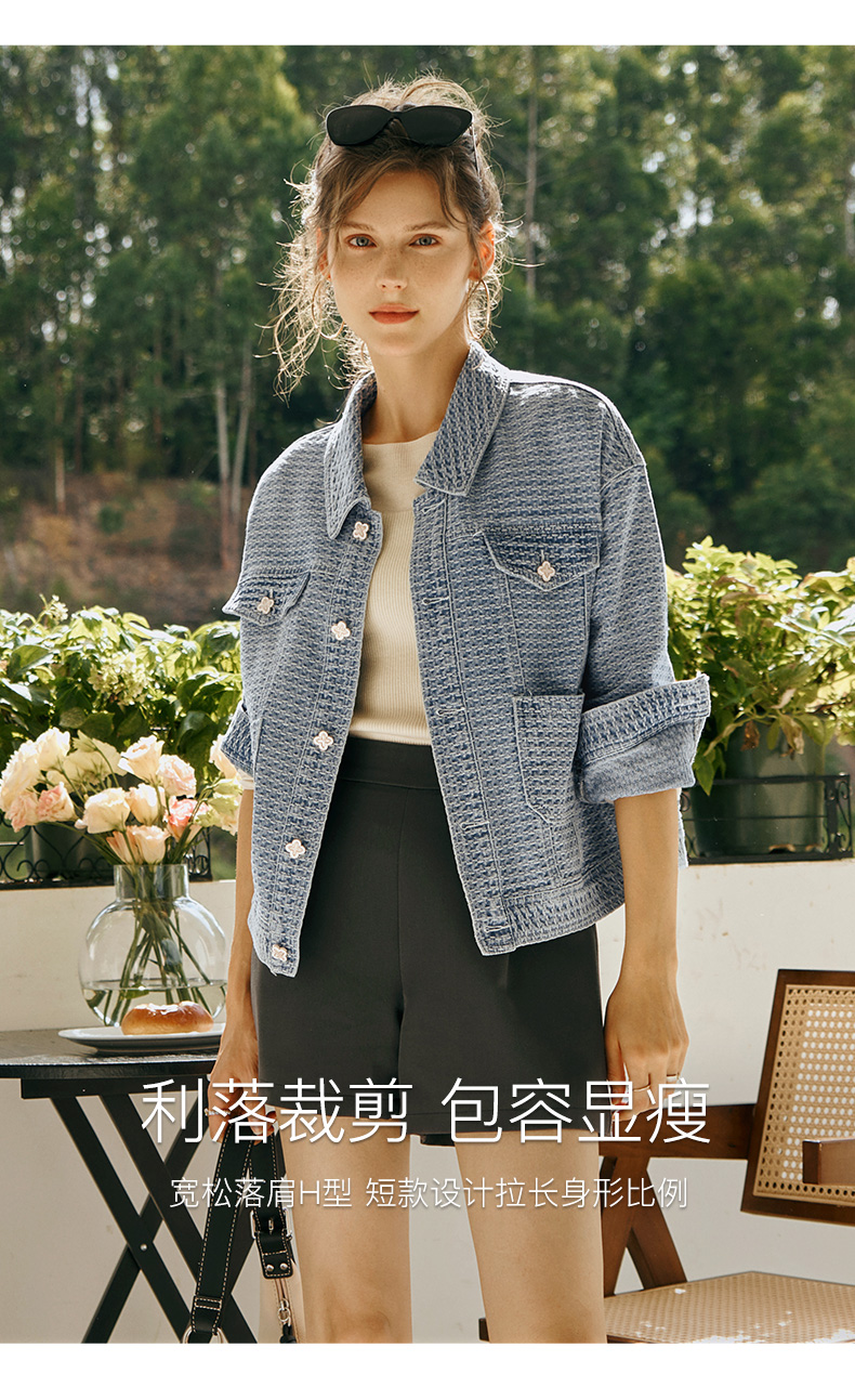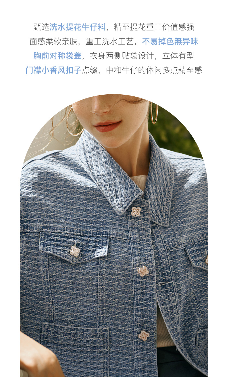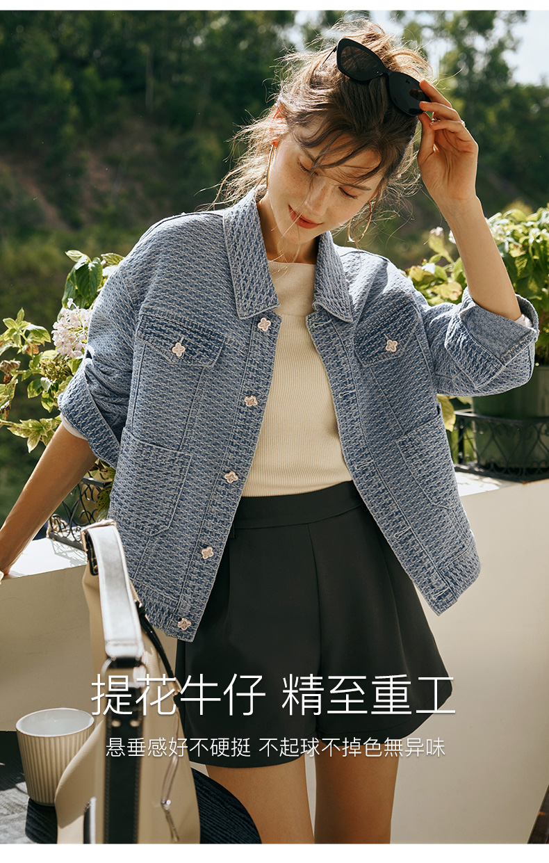 OLrain欧芮儿小香风牛仔短外套女初秋2023年新款宽松重工提花上衣