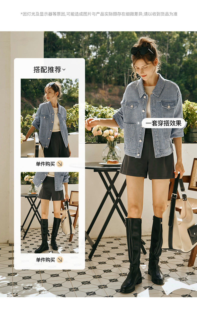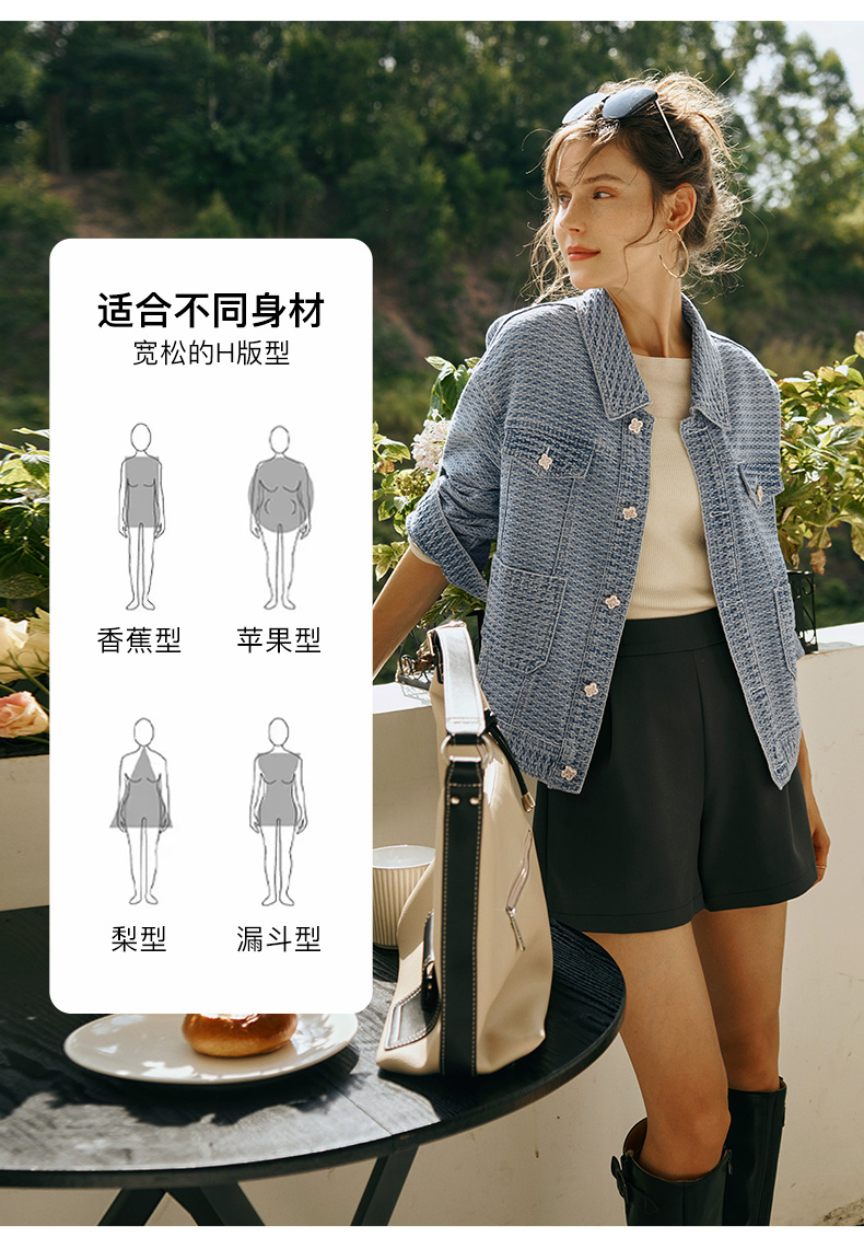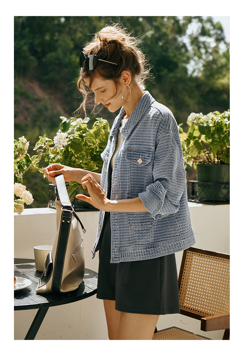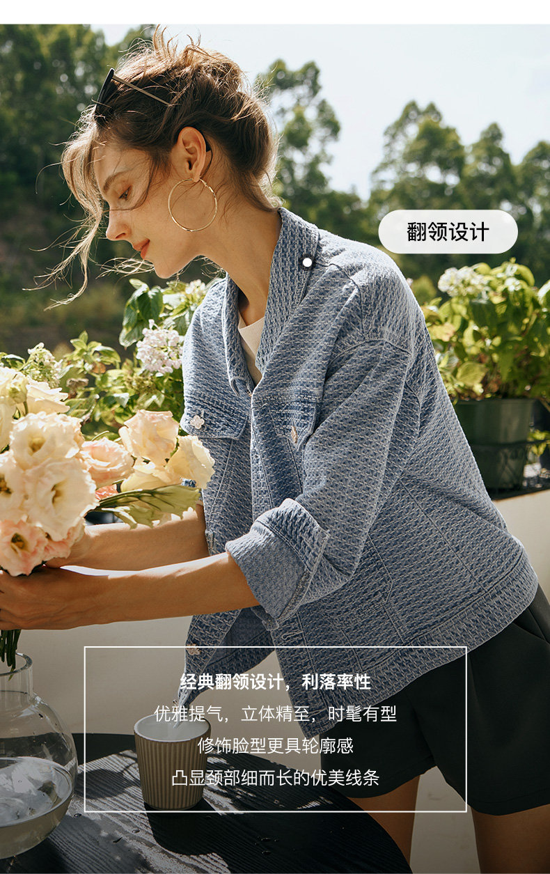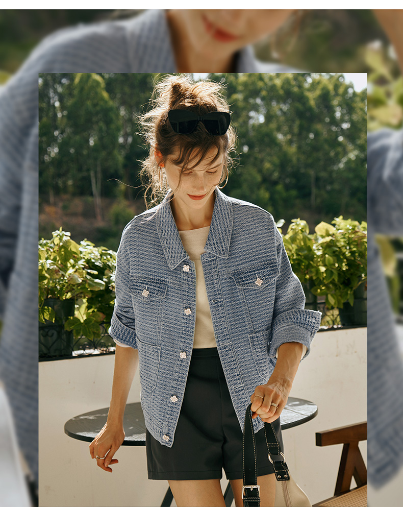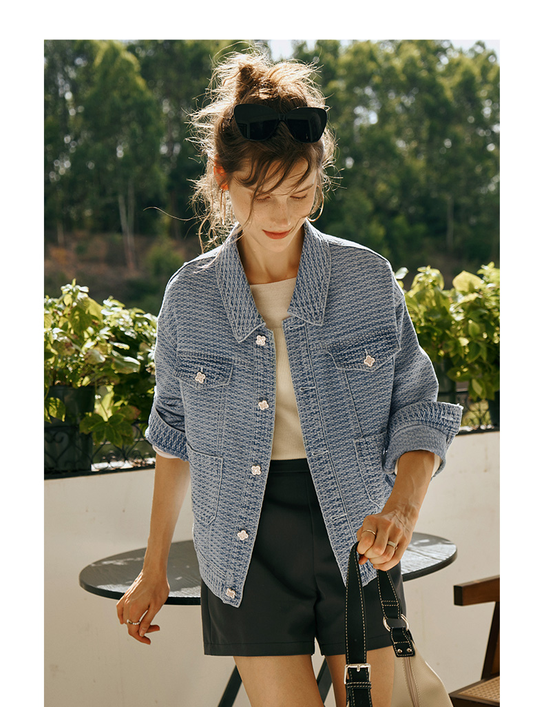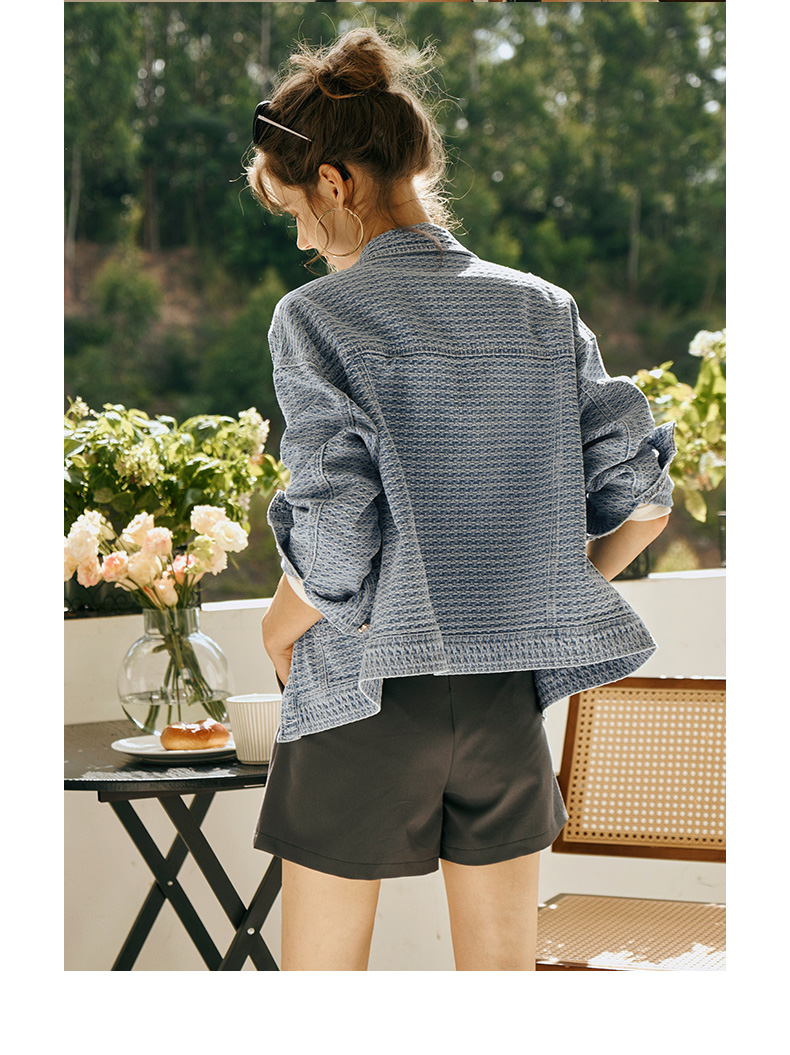 OLrain欧芮儿小香风牛仔短外套女初秋2023年新款宽松重工提花上衣