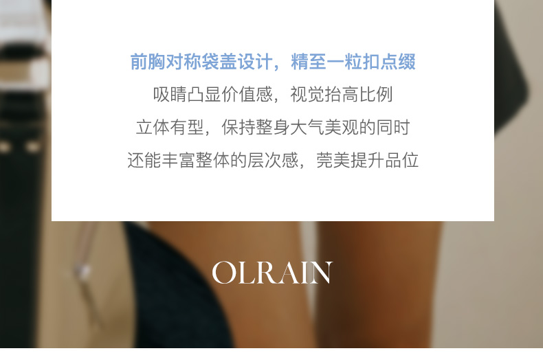 - “精致”是欧芮儿olrain品牌文化的核心,欧芮儿认为,精致的女人,不但要外在动人,更要内在迷人,内外兼修,有魅力、有气质、有内涵,自信而不自傲,优雅而不矫揉,自有万种风情而不轻浮,更不故作矜持。