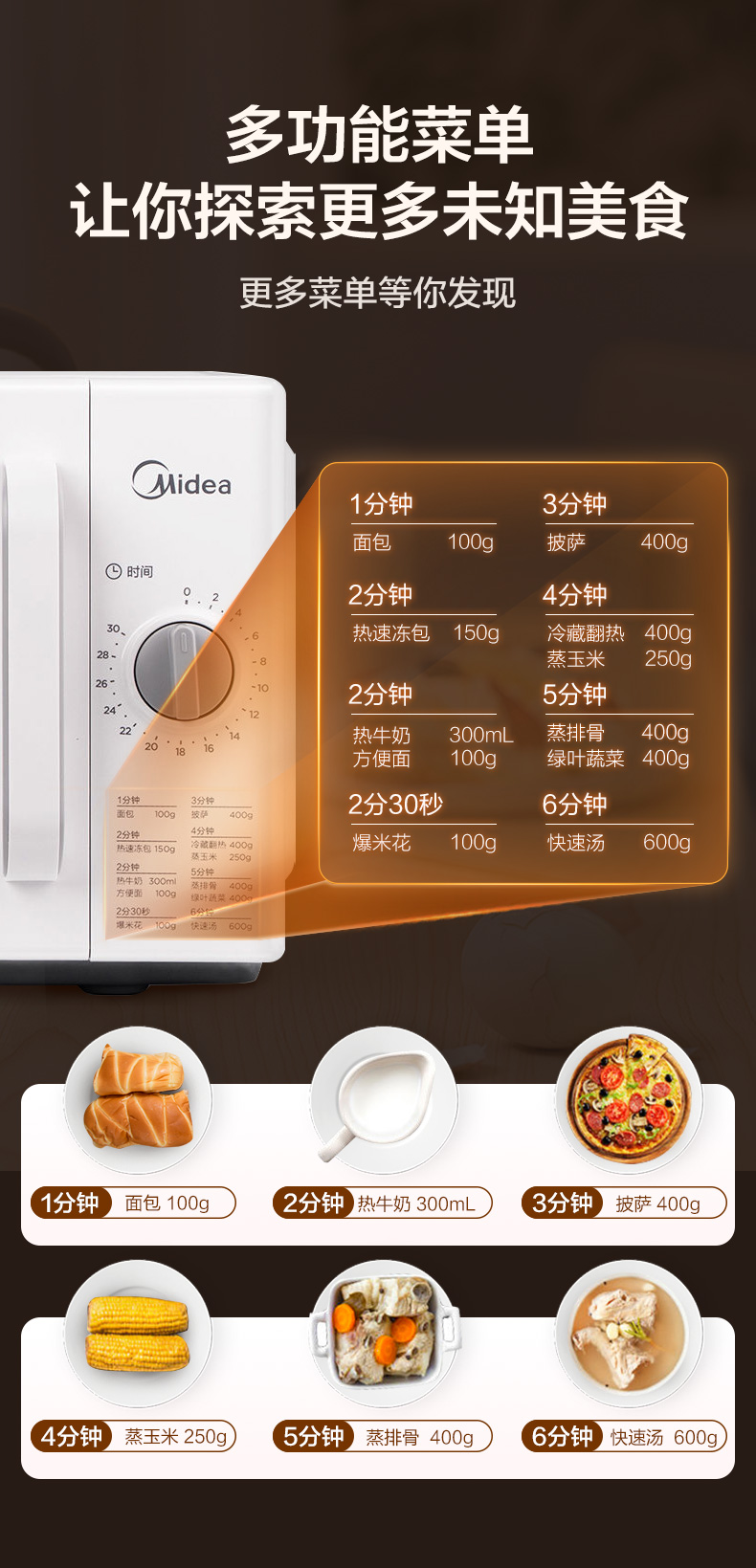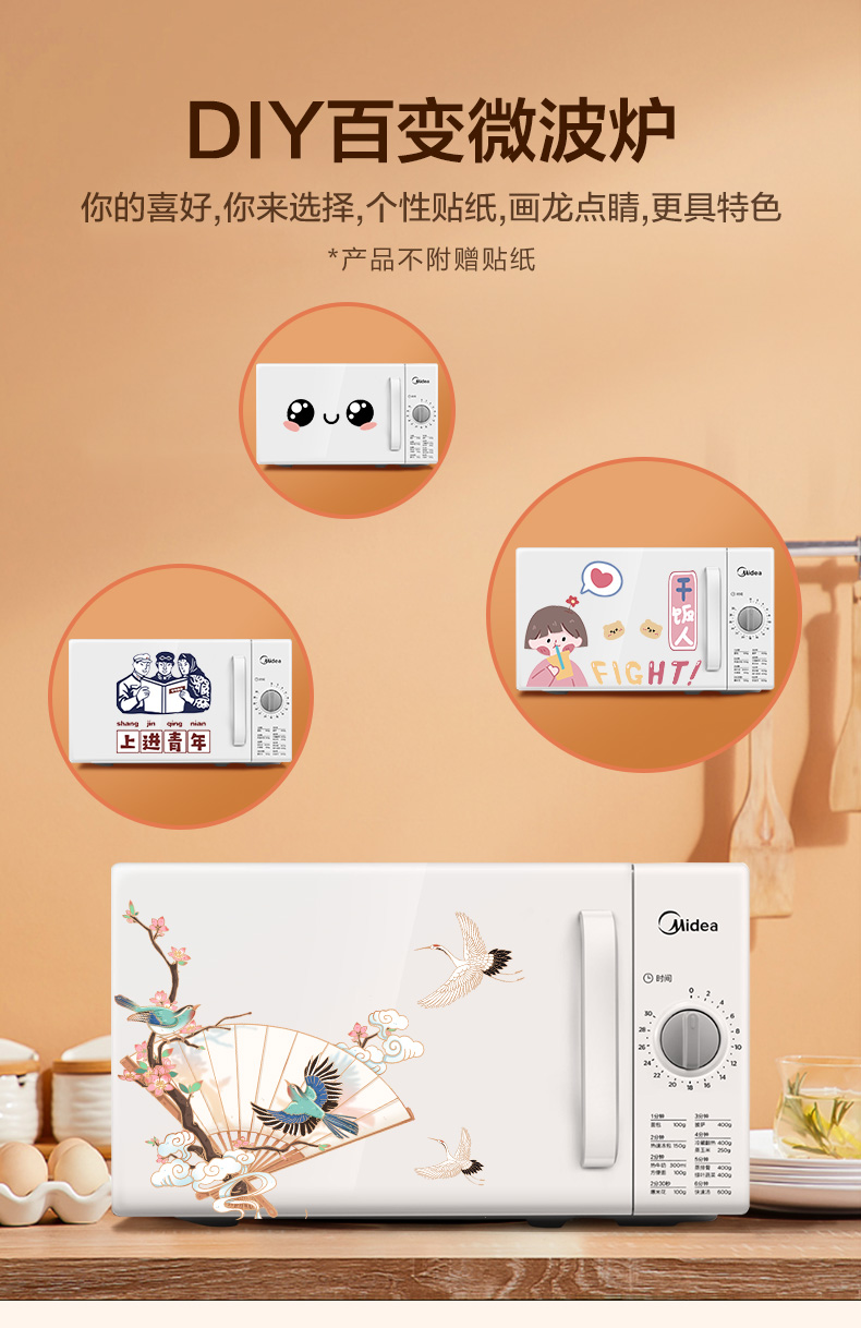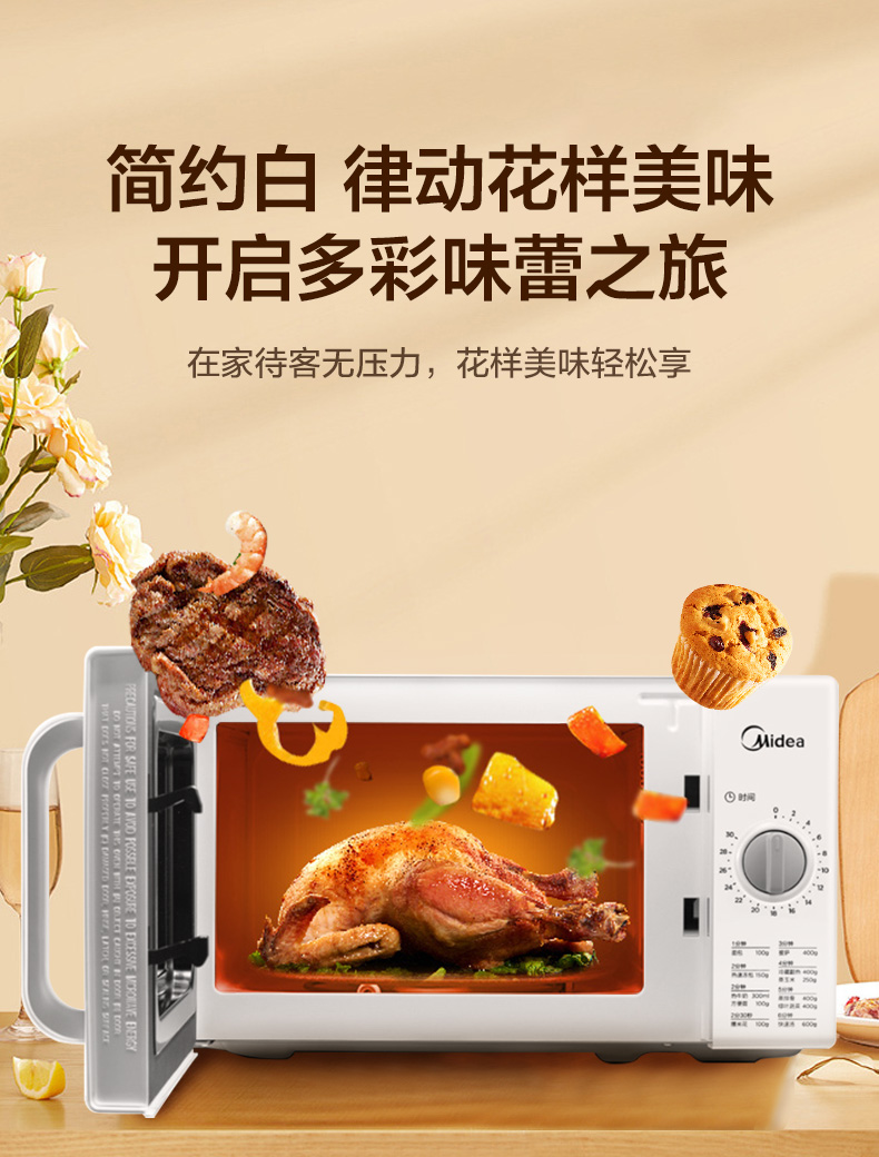 美的(Midea)快捷家用微波炉 家用小型迷你 360°转盘加热 旋钮操控 易洁内胆 时间调节20升PM2000